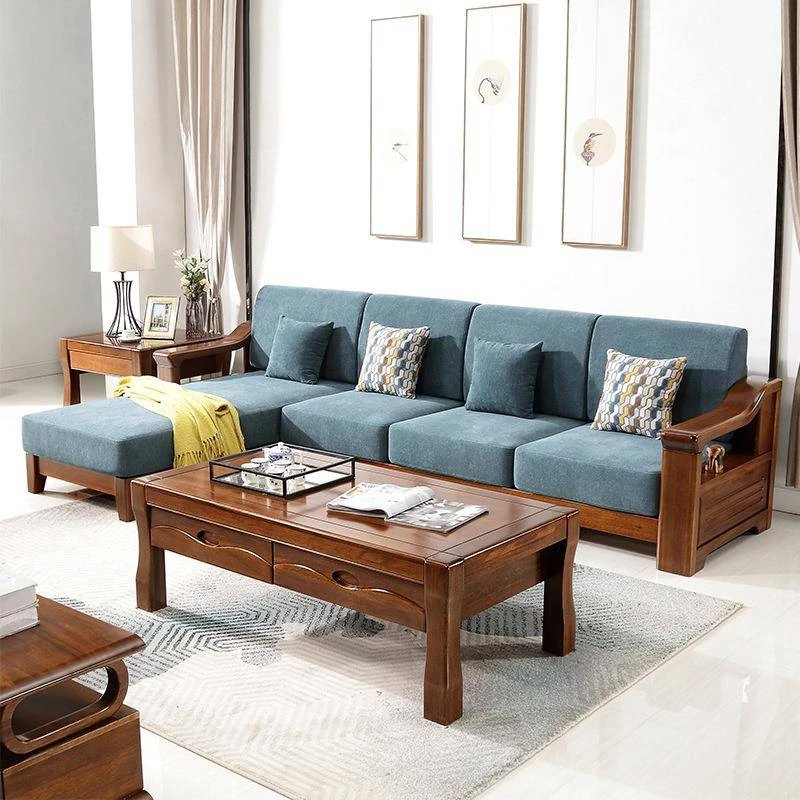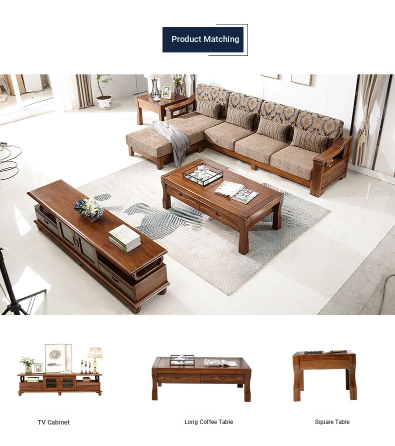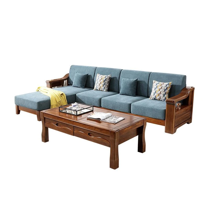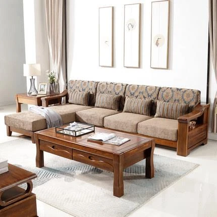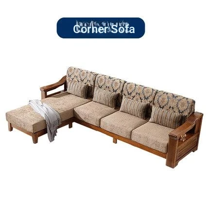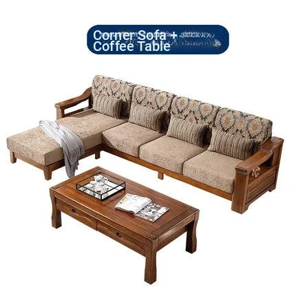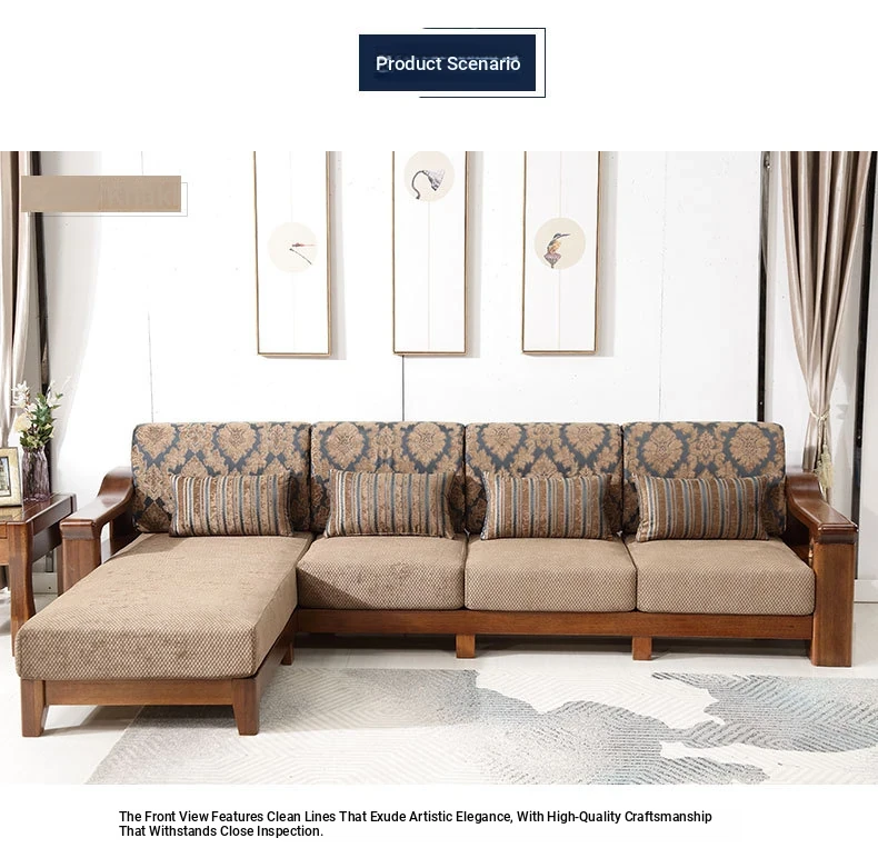 Walnut Solid Wood Upholstered Sofa - New Chinese Style L-Shaped Corner Sofa Set for Living Room Furniture, Elegant and Durable Design