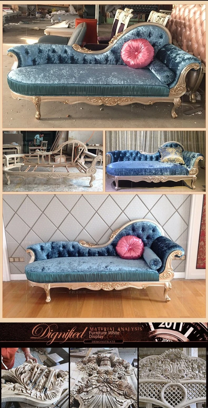 Xinyi Xuan French-style Chaise Lounge - Luxurious Fabric Sofa, European Neoclassical Design, Solid Wood Bed for Bedroom Relaxation - Perfect for Comfort and Elegance!