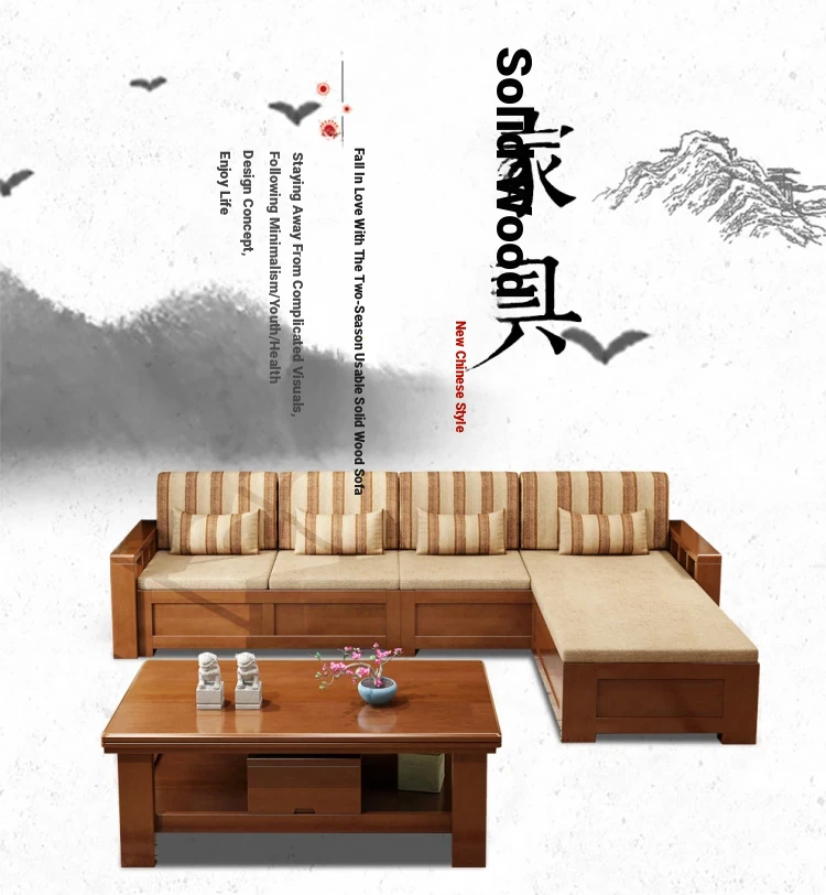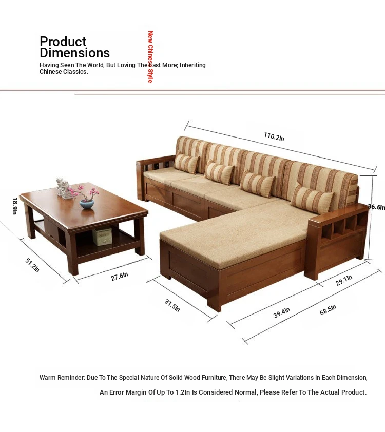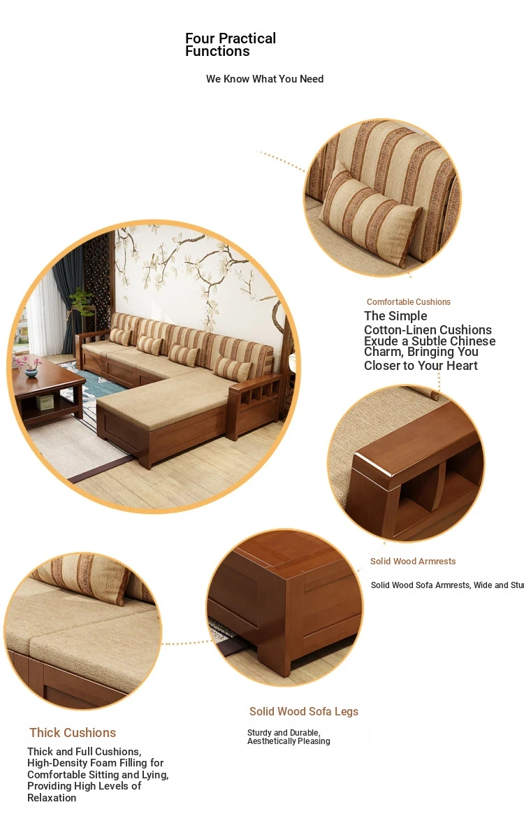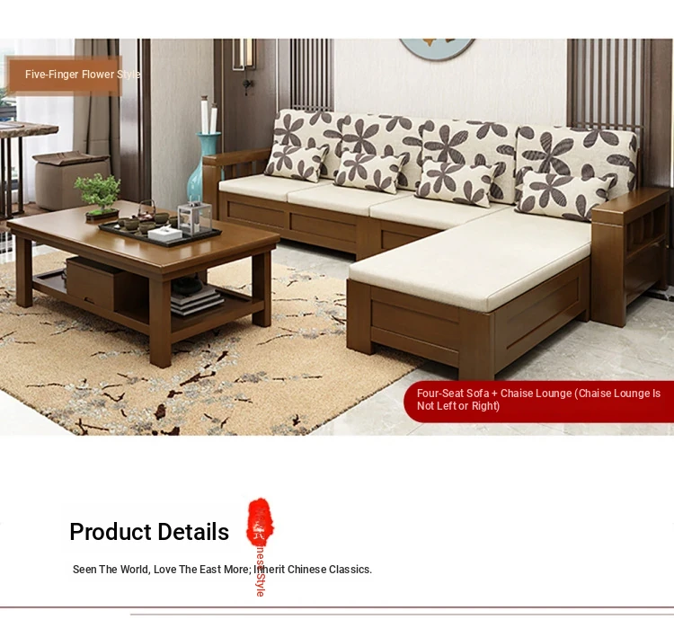 Yituo Solid Wood Sofa - Economical Modern Minimalist New Chinese Style Living Room Furniture Set with Storage for Year-Round Use - Easy Assembly for Small Spaces