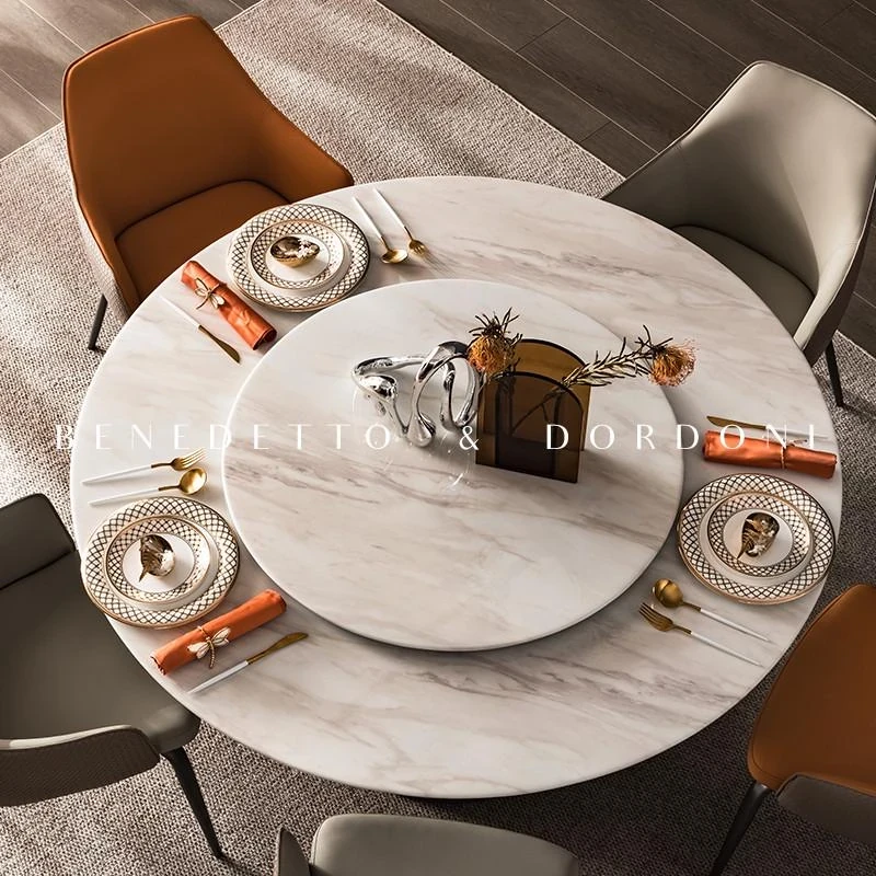 1.2メートル大理石製ダイニングテーブル(回転盤付き)
