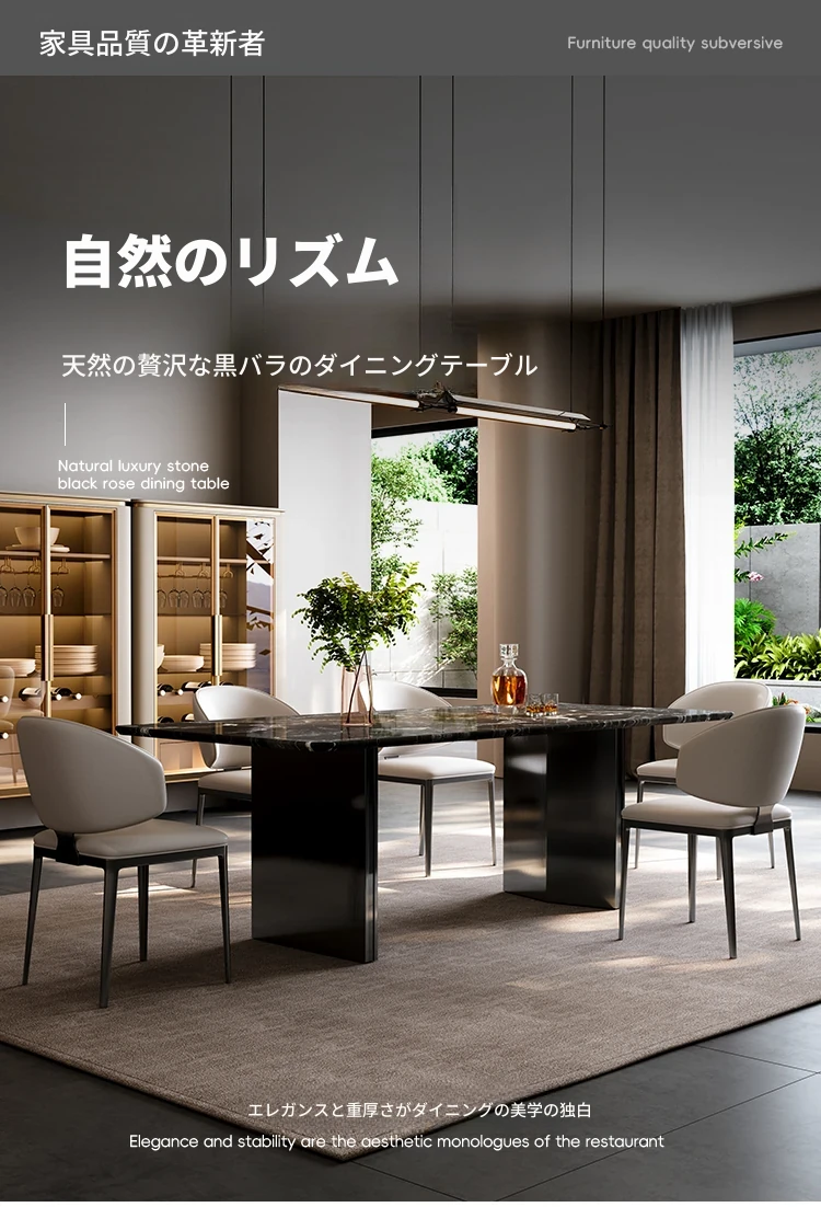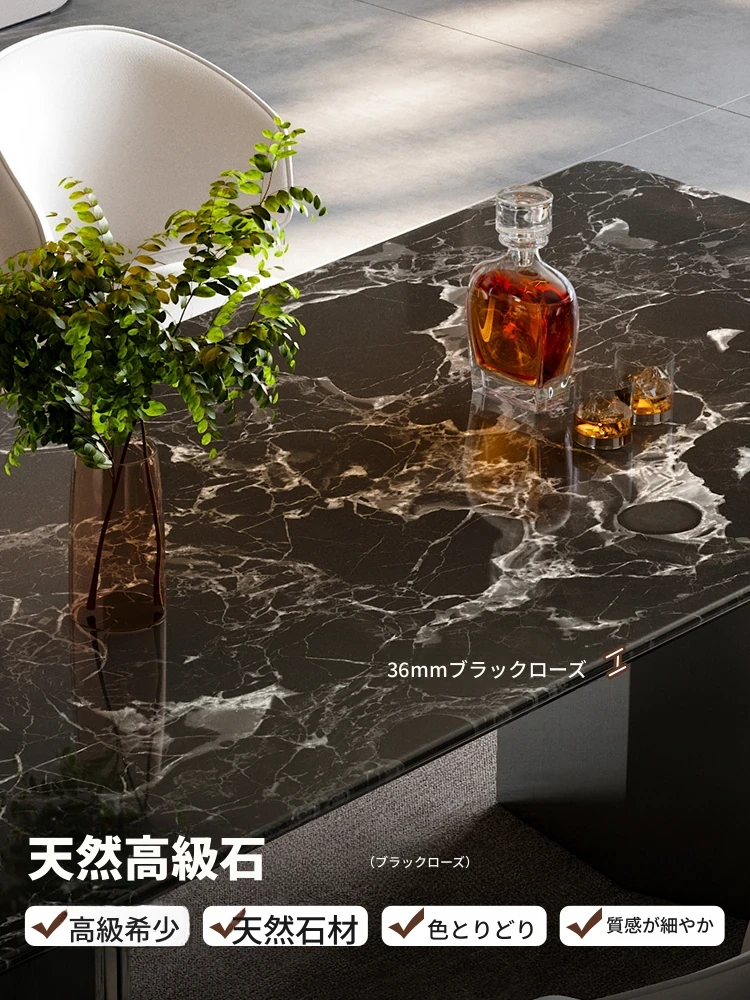 [黒バラ]天然ラグジュアリー石テーブル+椅子*6(純天然ラグジュアリー石、偽物は十倍の罰)