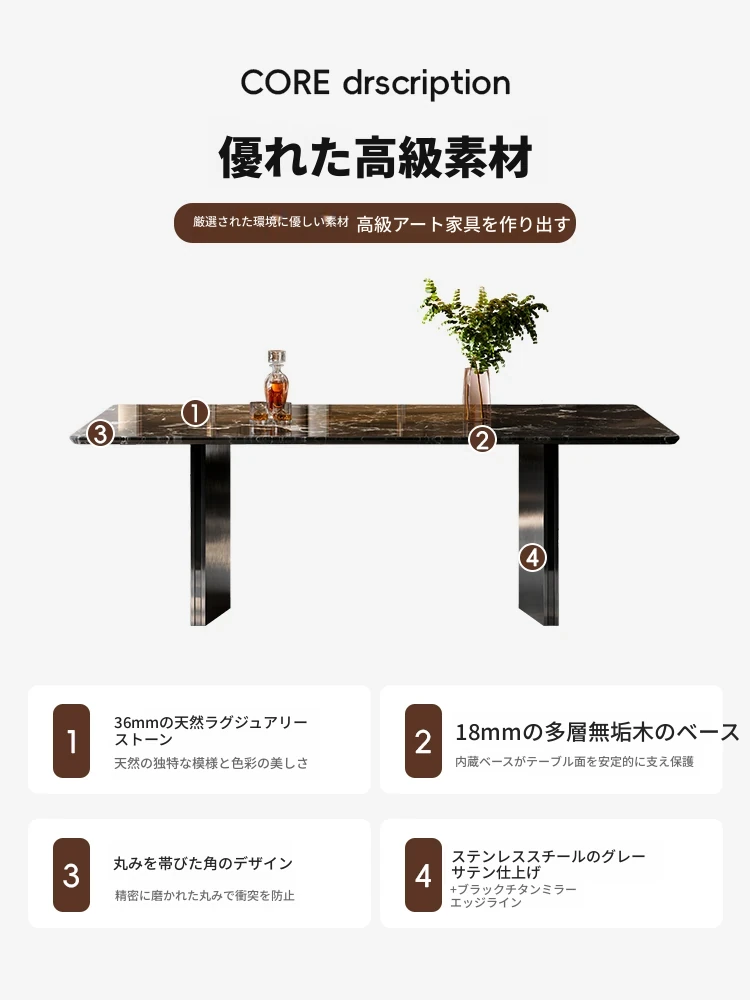 [国産ヴェニスブラウン]天然ラグジュアリー石テーブル(純天然ラグジュアリー石、偽物は十倍の罰)