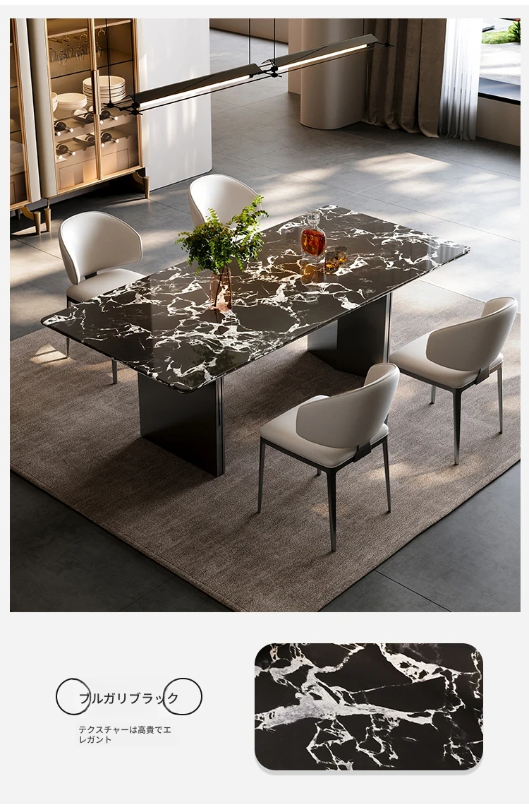 [ブルガリブラック]天然ラグジュアリー石テーブル+椅子*6(純天然ラグジュアリー石、偽物は十倍の罰)