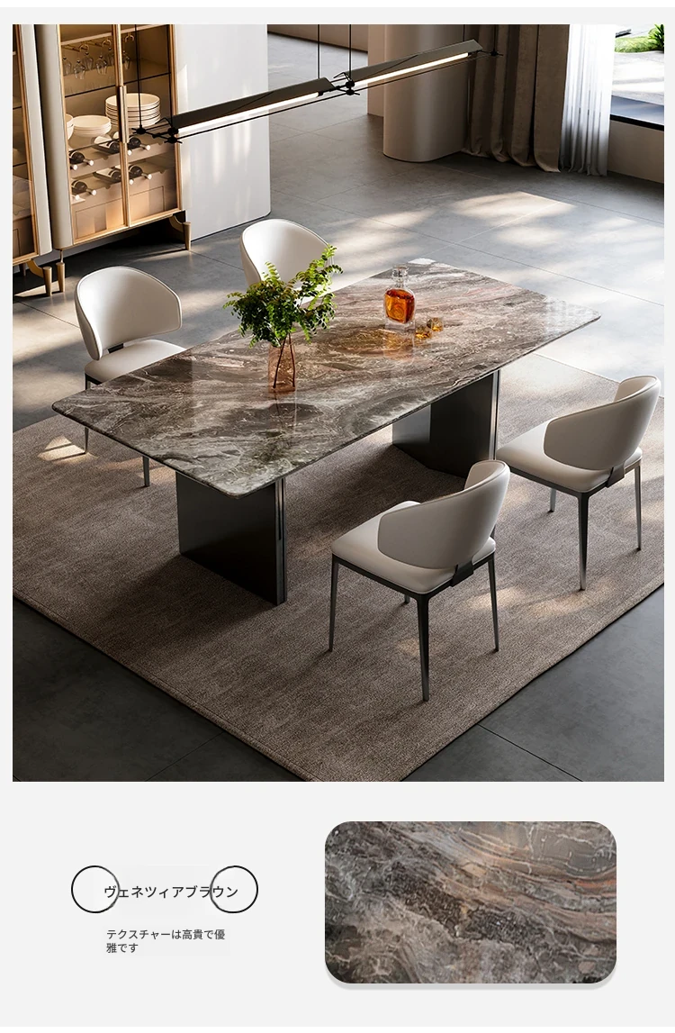 [国産ヴェニスブラウン]天然ラグジュアリー石テーブル+椅子*6(純天然ラグジュアリー石、偽物は十倍の罰)
