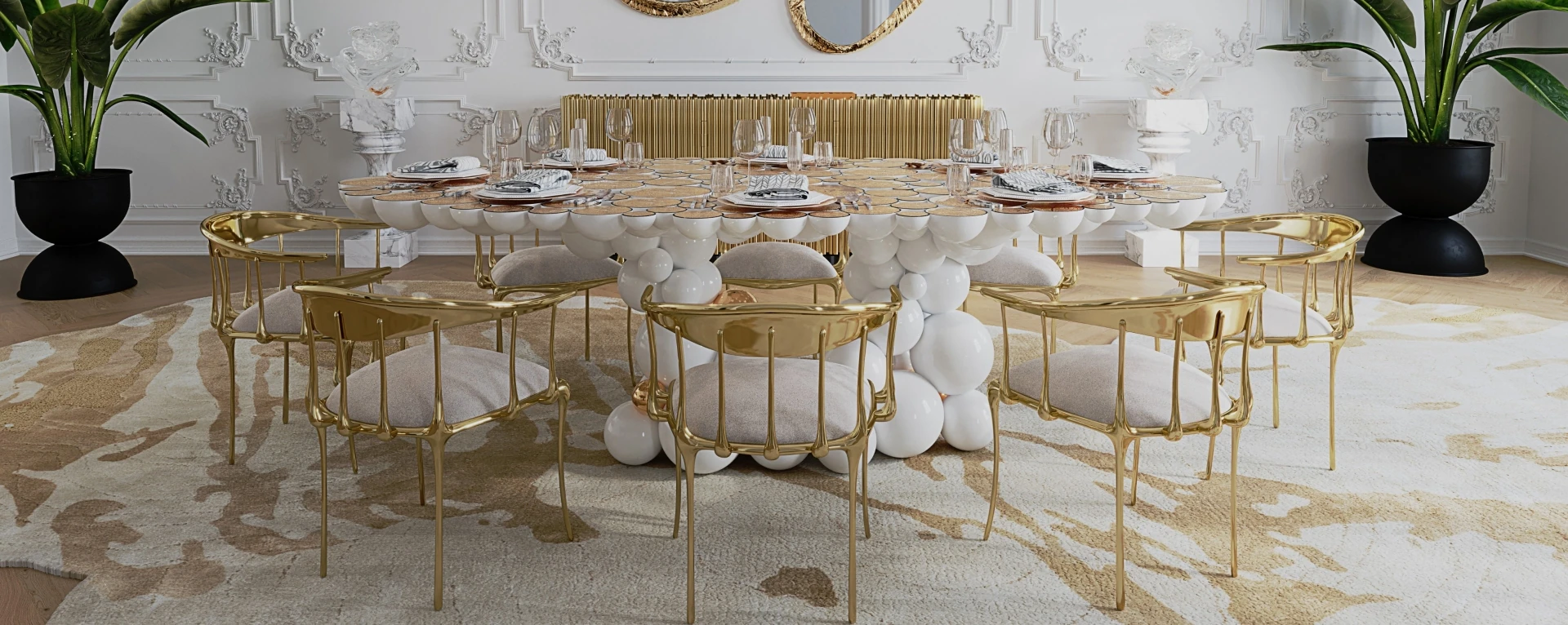BOCA DO LOBO 高級イタリアンレストランテーブル - 豪華なヴィラにぴったりな長方形ダイニングテーブル。洗練されたデザインで、特別なひとときを演出。高級感溢れる空間を演出します!