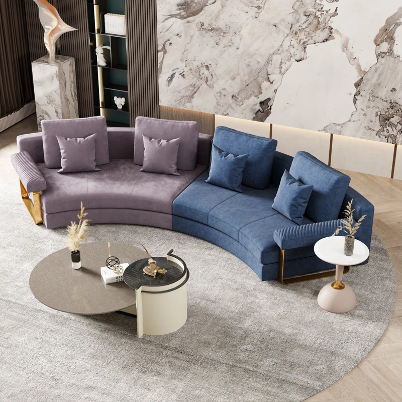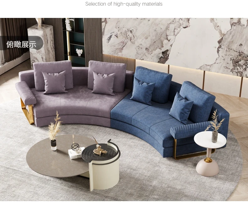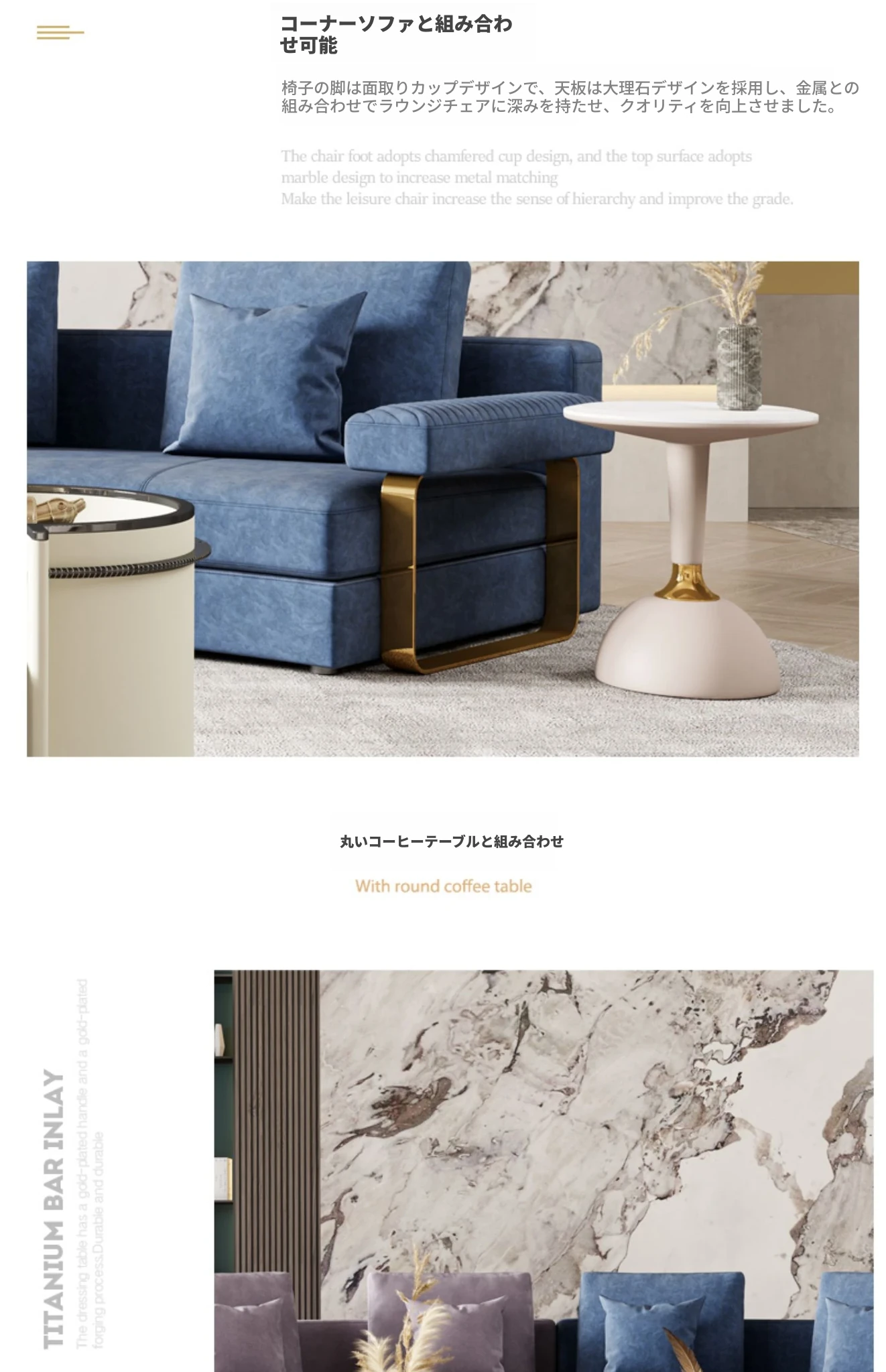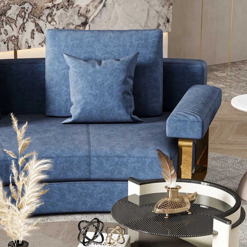 香港スタイルのラグジュアリーサンプルルーム!シングル、ダブル、トリプル対応の高品質レザーとファブリックのソファ。イタリアンデザインのリビングにぴったりのステンレスゴールド仕上げ!快適さとエレガンスを両立した空間を演出します。