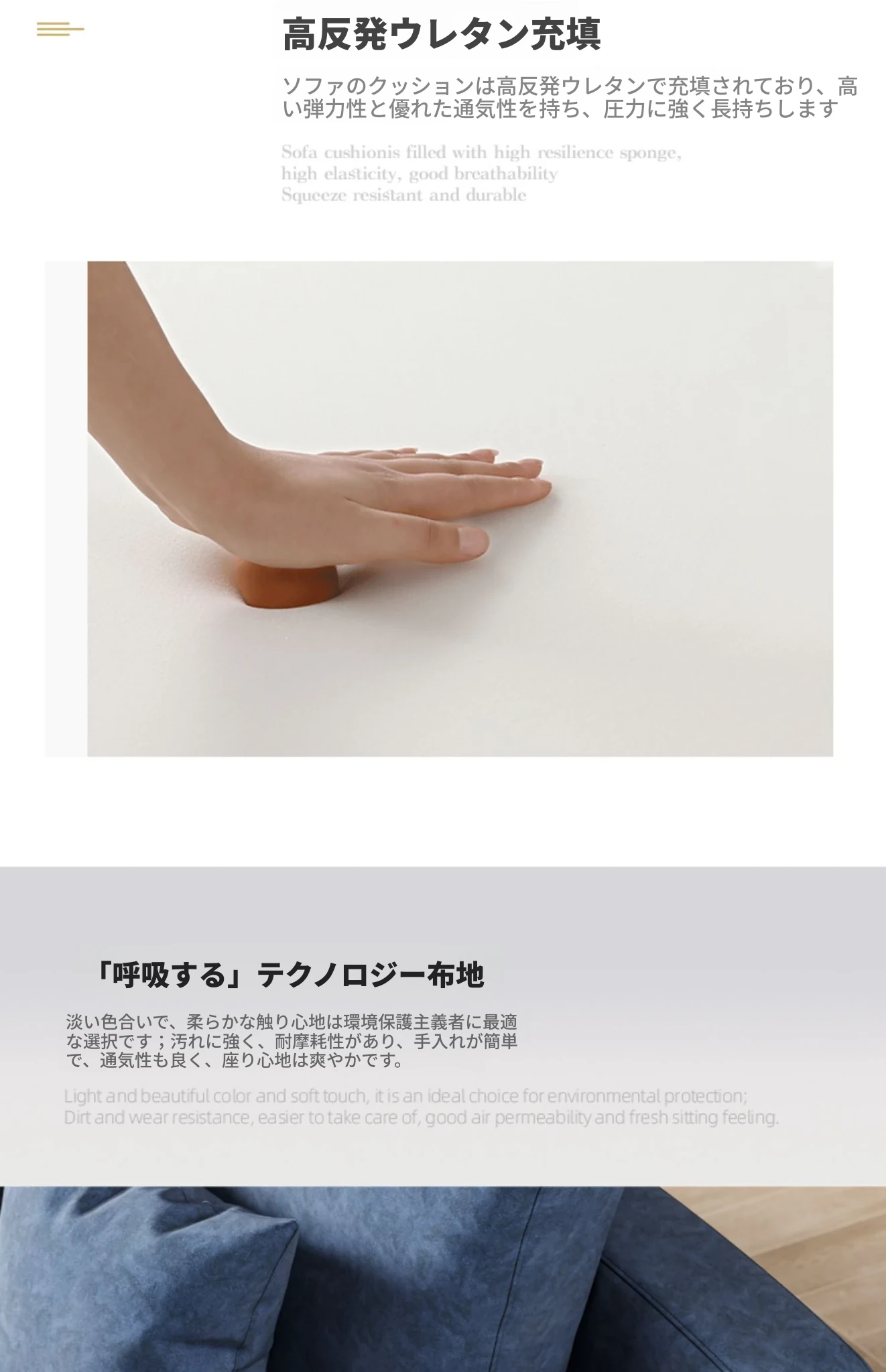 梵辰の和風ファブリックソファ - 小型リビングにぴったりな2人掛け・3人掛け、無垢材とアイアンのシンプルでモダンなコンビネーション家具!おしゃれで快適な空間を演出します。