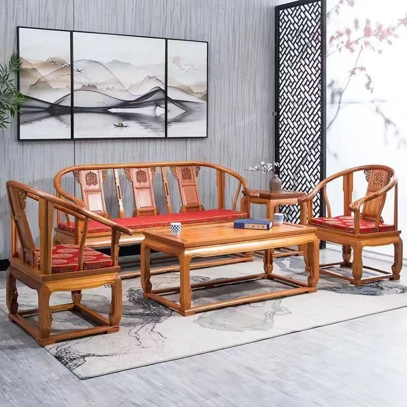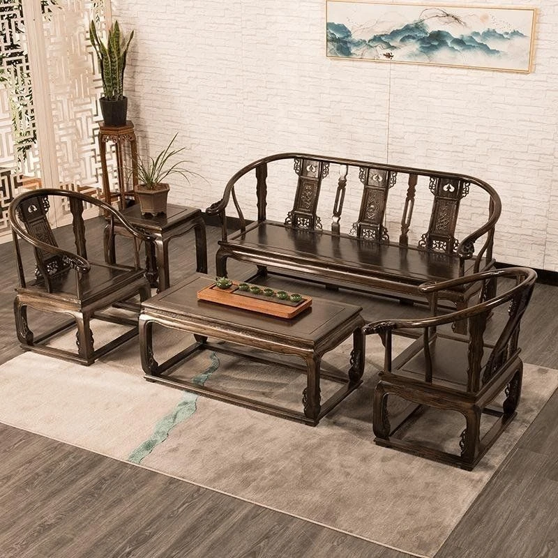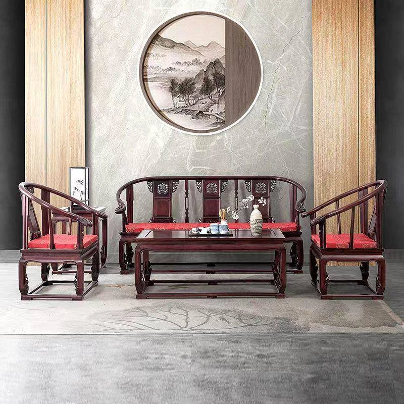 中華風の実木製サロンセット - 新古典風エレガントAEK宮椅子5点セット、明清様式のアンティークデザインで、あなたのリビングルームに高貴な雰囲気を演出します!