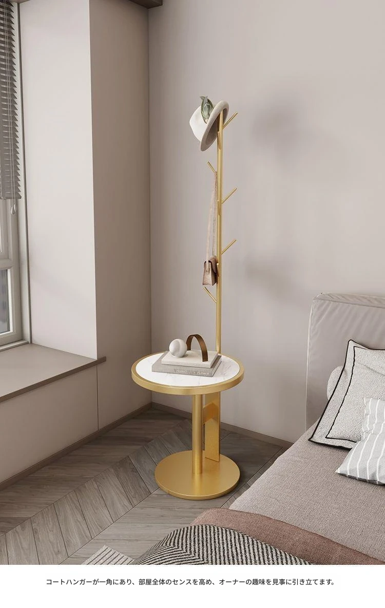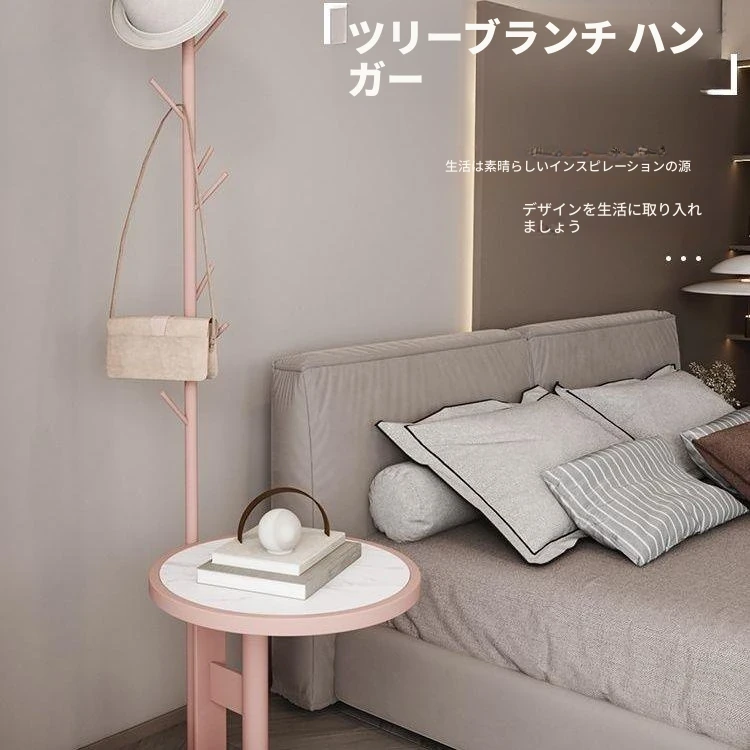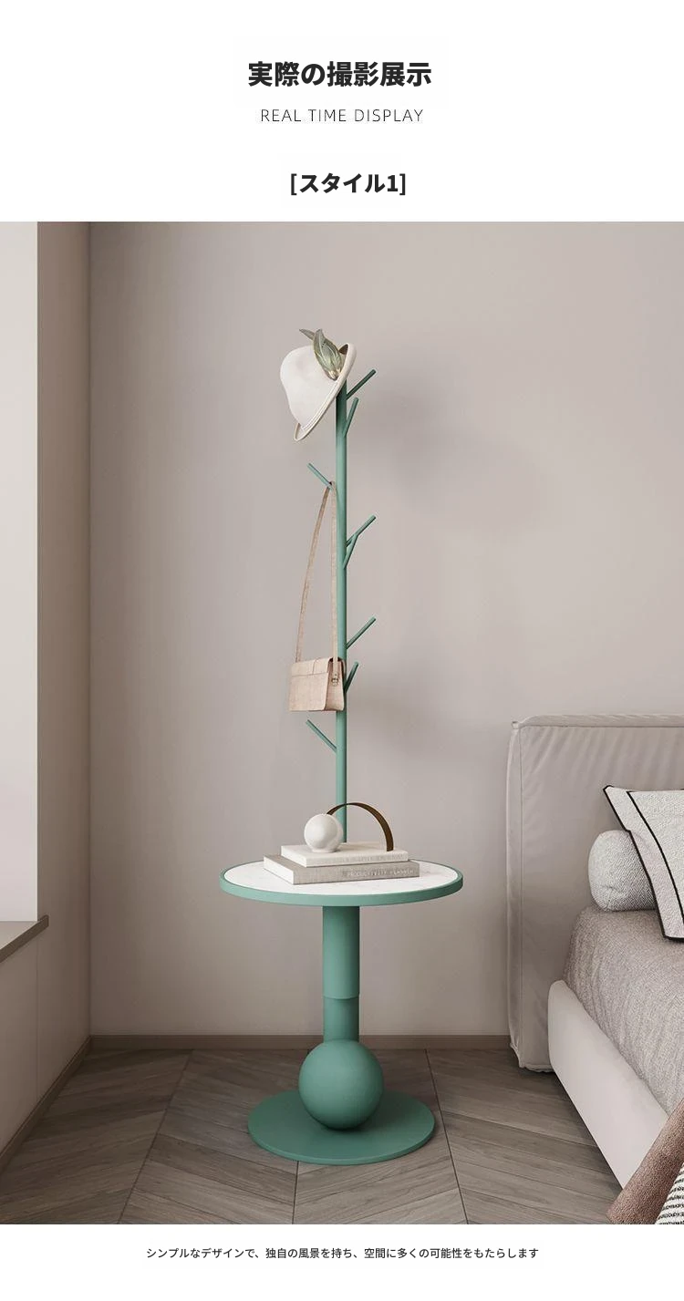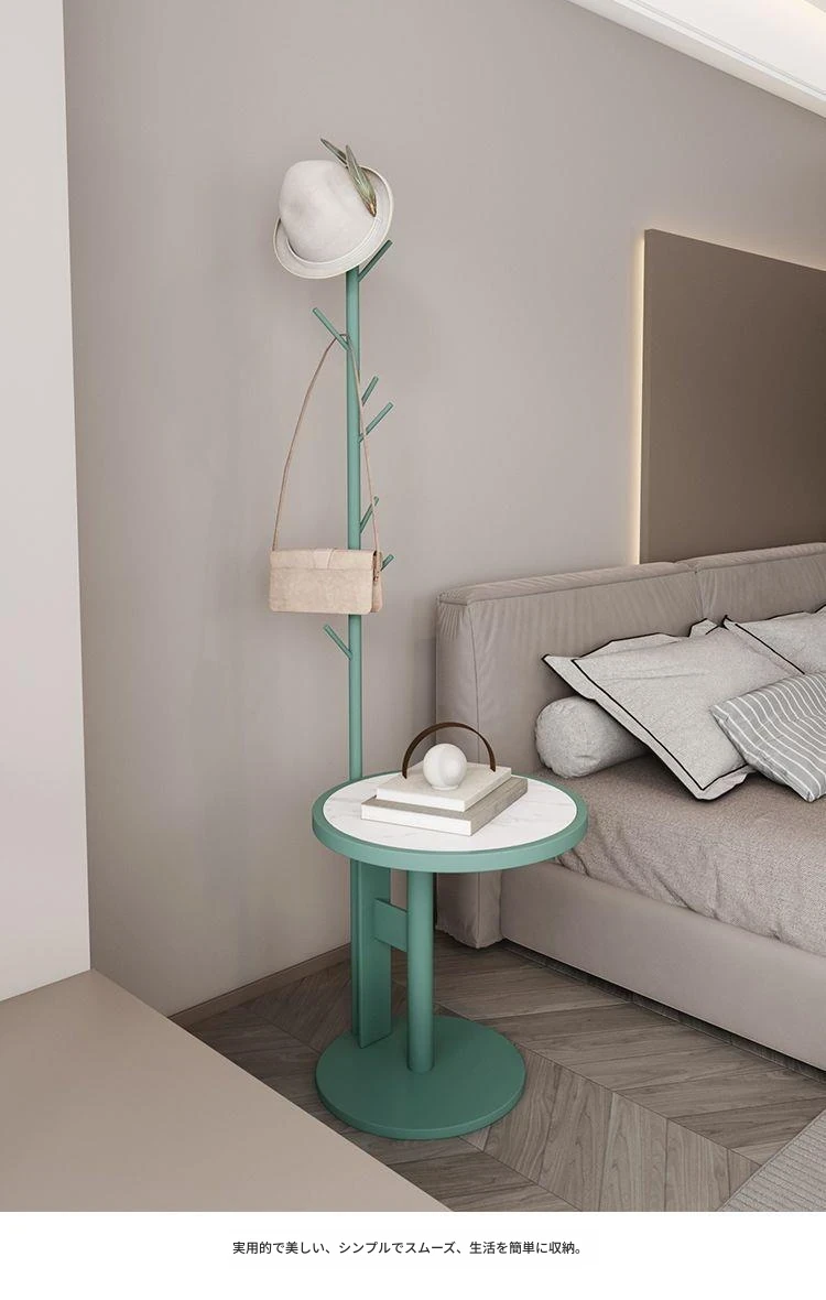 リビングに最適な小型スタンド式クリエイティブベッドサイドテーブル&ハンガーラック!限られたスペースを有効活用し、スタイリッシュな空間を演出します。おしゃれで機能的な収納で、あなたの生活をもっと便利に!