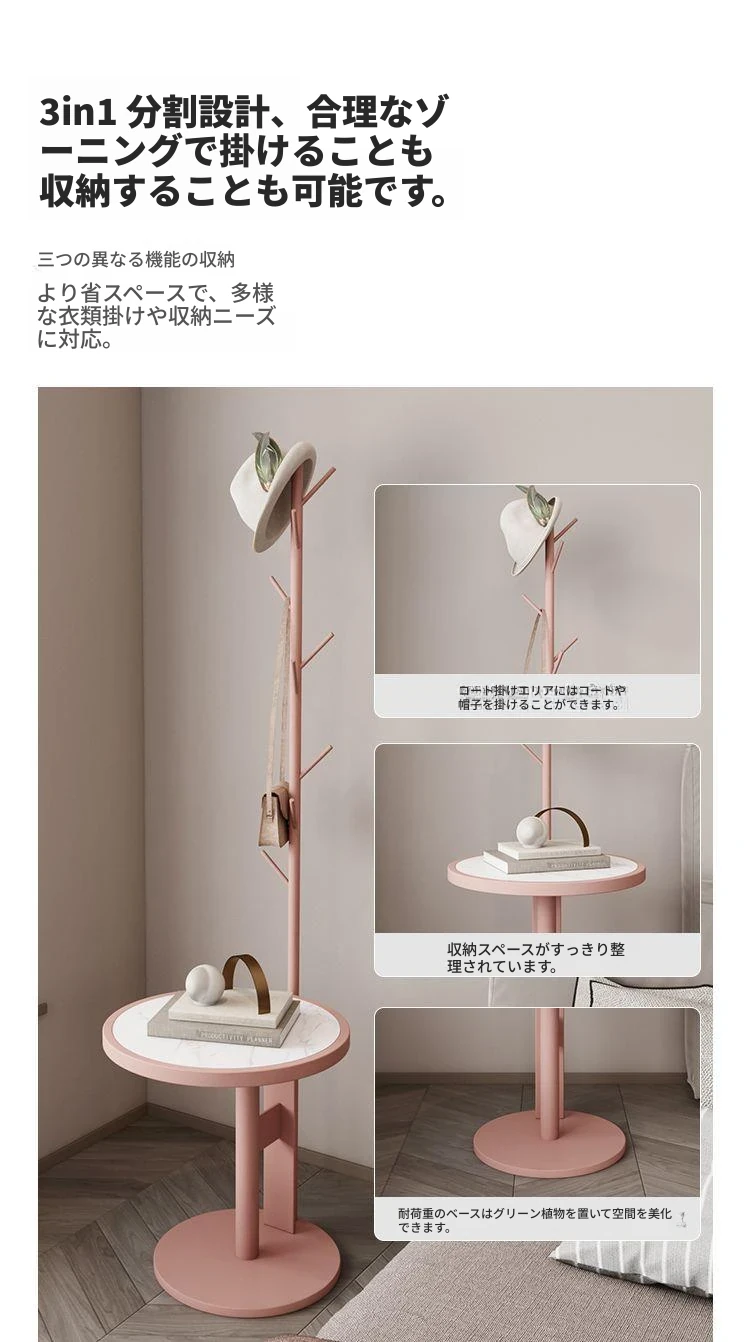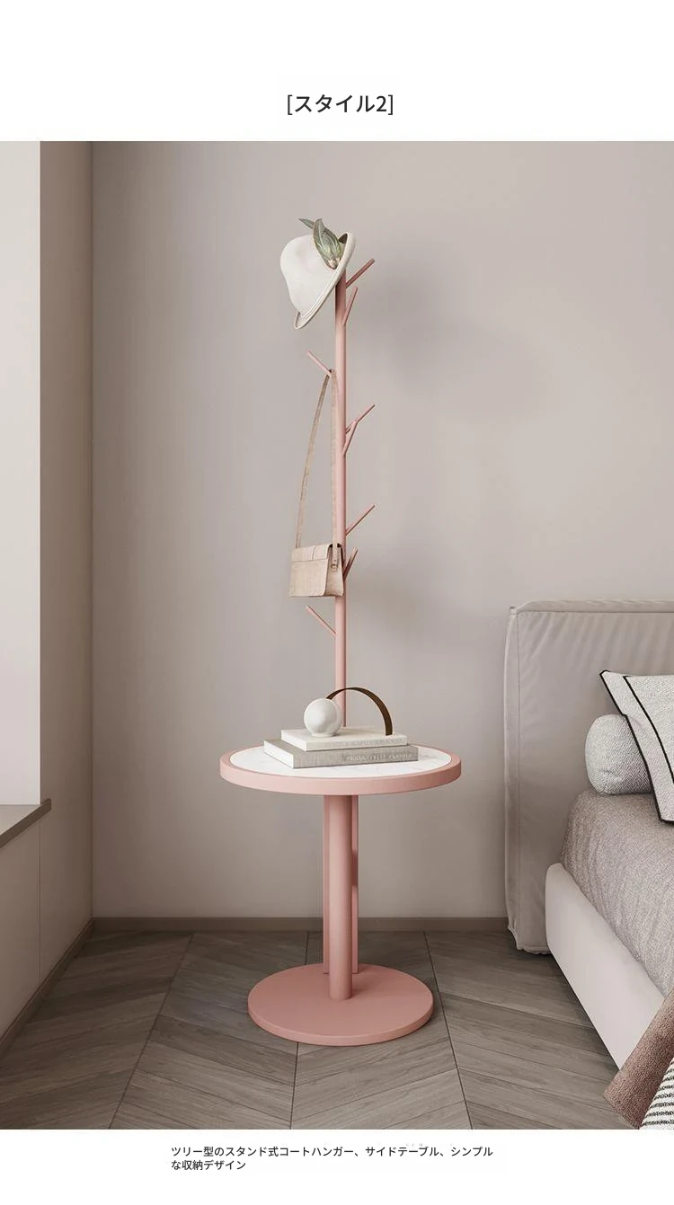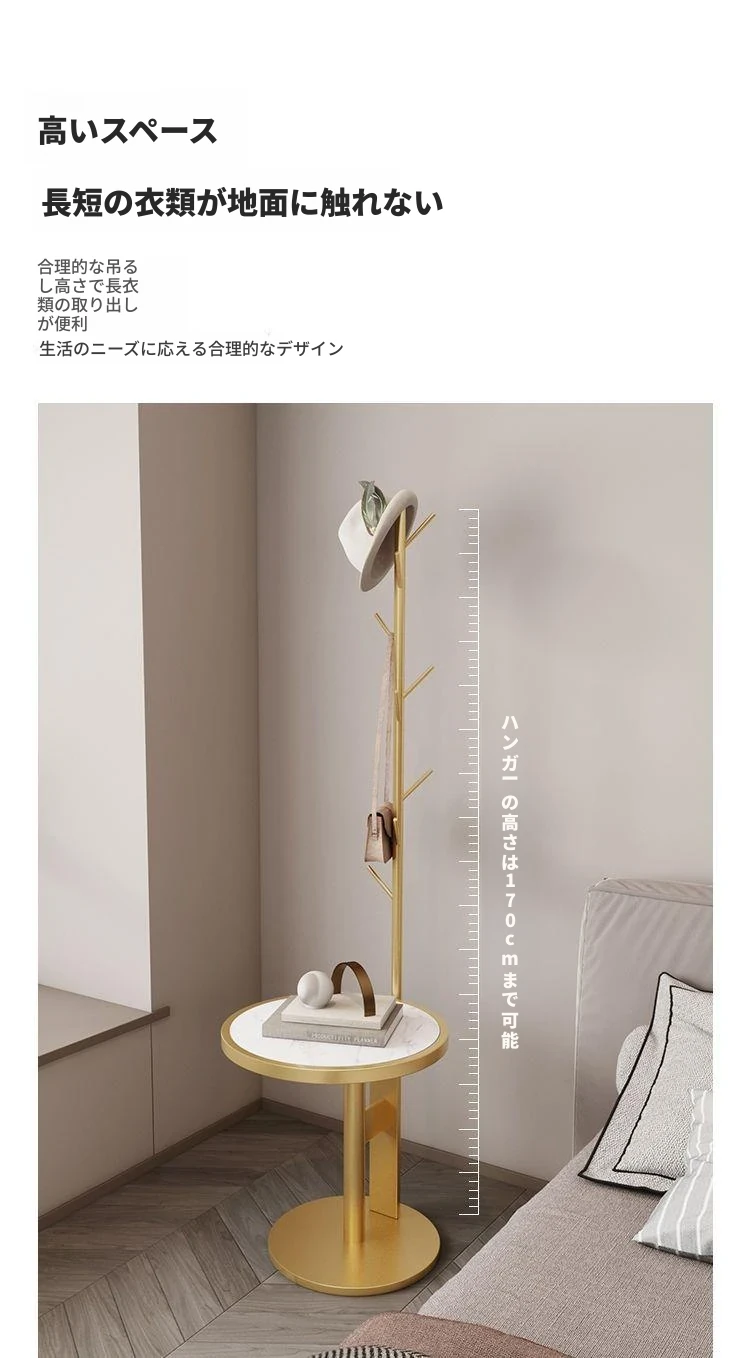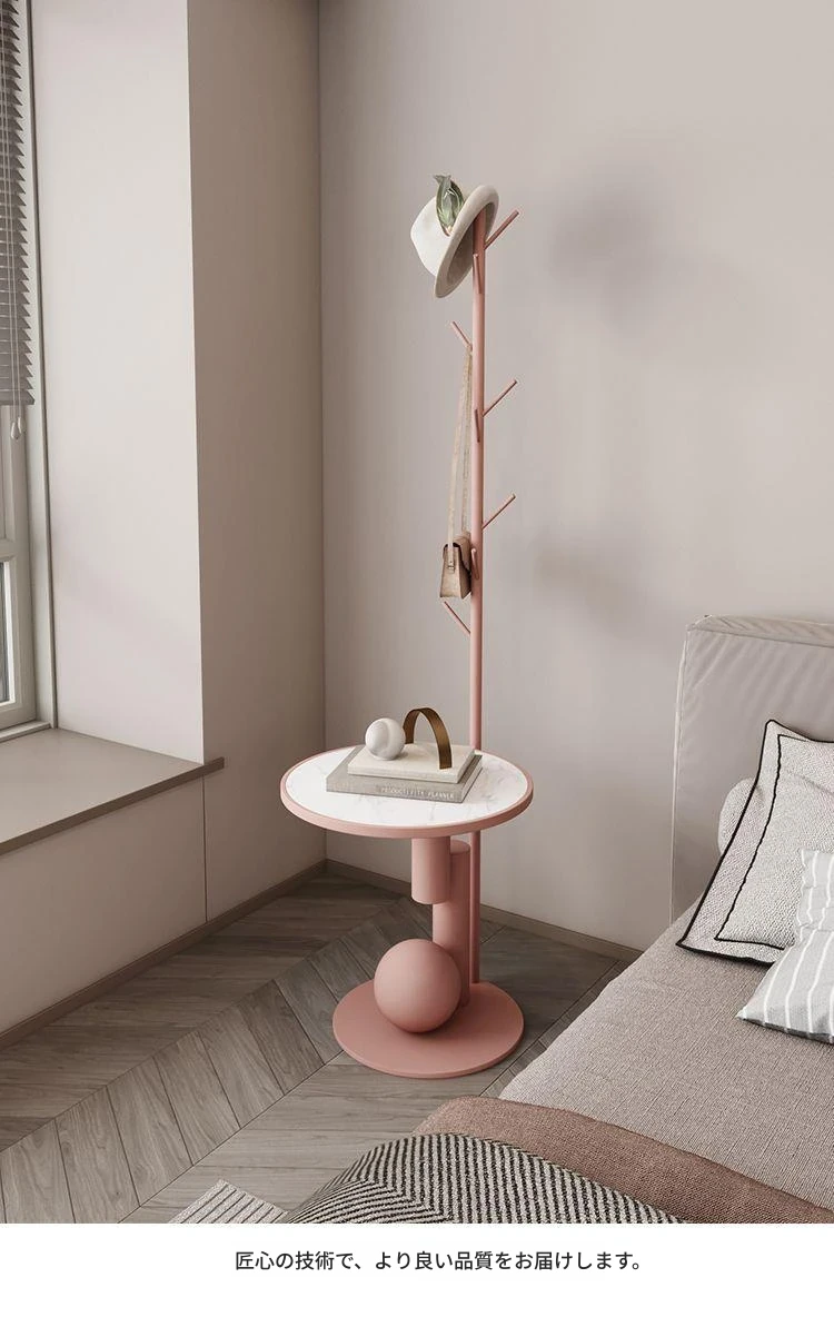 リビングに最適な小型スタンド式クリエイティブベッドサイドテーブル&ハンガーラック!限られたスペースを有効活用し、スタイリッシュな空間を演出します。おしゃれで機能的な収納で、あなたの生活をもっと便利に!