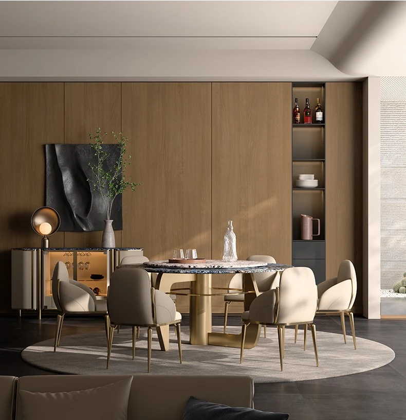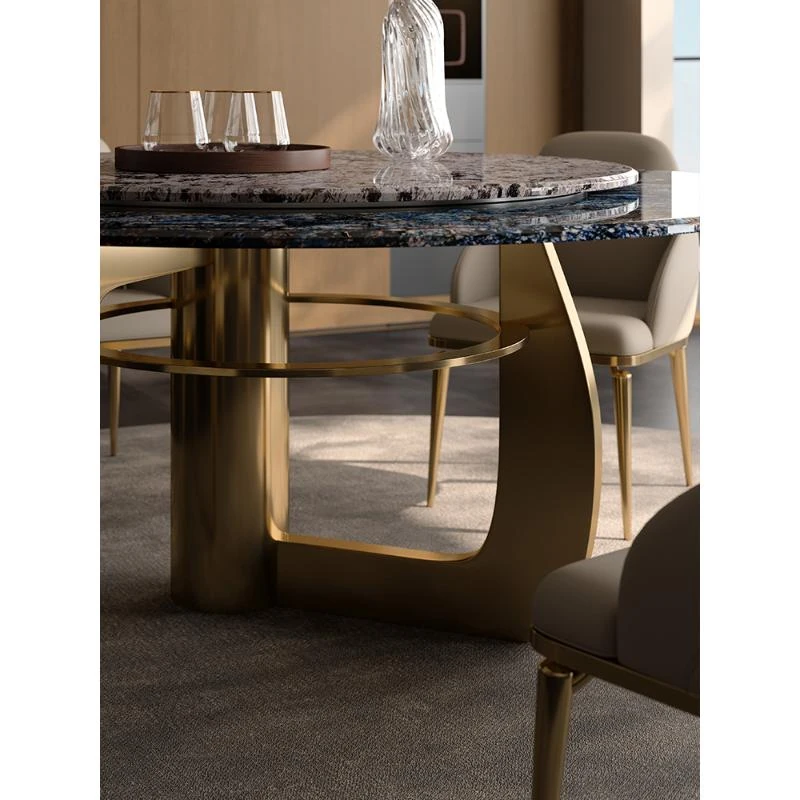 2.0M円形ダイニングテーブル/ビクトリアブルー天板+天山暮雪豪華石回転台+TY27超合成皮革ダイニングチェア*8