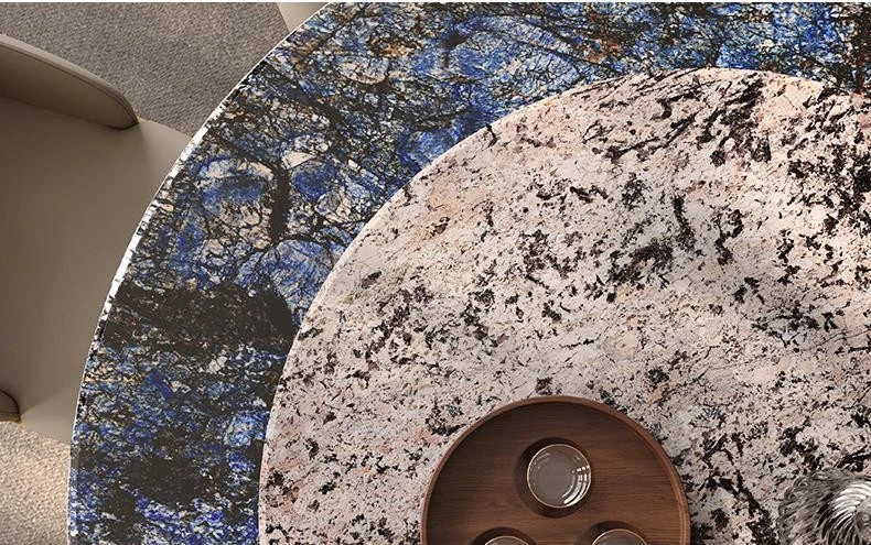 1.8M円形ダイニングテーブル/ビクトリアブルー天板+天山暮雪豪華石回転台