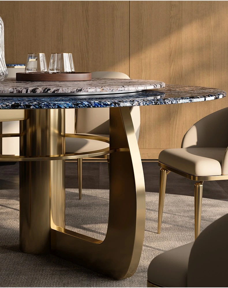 1.8M円形ダイニングテーブル/ビクトリアブルー天板+天山暮雪豪華石回転台+TY27超合成皮革ダイニングチェア*6