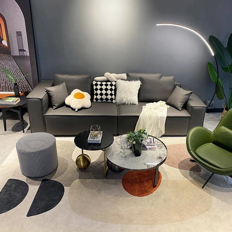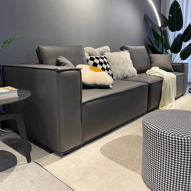エコレザー製リビングソファ|イタリアンミニマルデザインの3人掛け&4人掛けソファ|快適な豆腐ブロックスタイルでおしゃれな空間を演出!