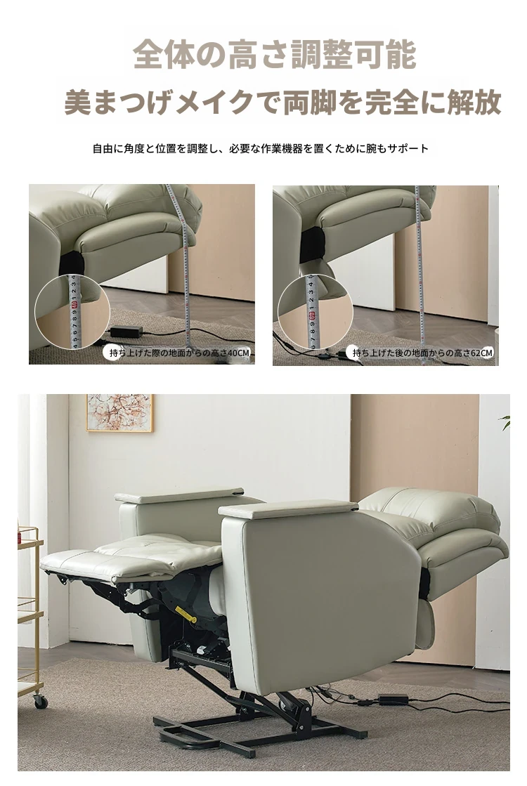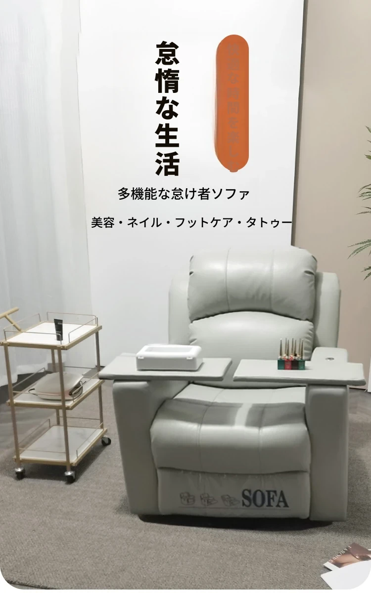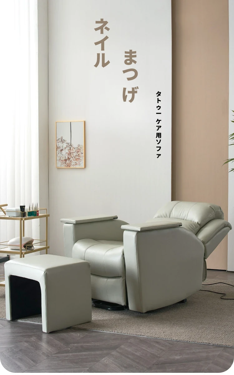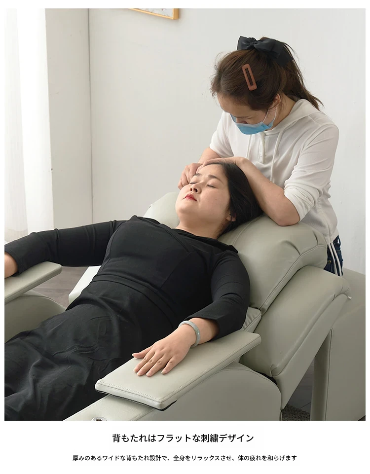 電動ネイル&まつげエクステ専用サロンソファ!180度リクライニング&昇降機能付きで、快適な施術を実現。美しい足元もお任せ!あなたのサロンに最適なアイテムです。