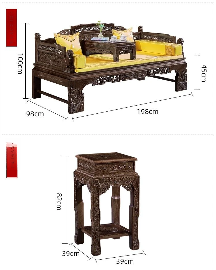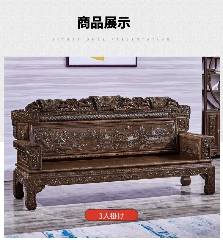 新中式ウッドブラックウッド全実木ソファ|冬夏兼用のラグジュアリー収納ソファ|広々としたヴィラや大規模なリビングに最適!優雅なデザインで心地よい空間を実現。