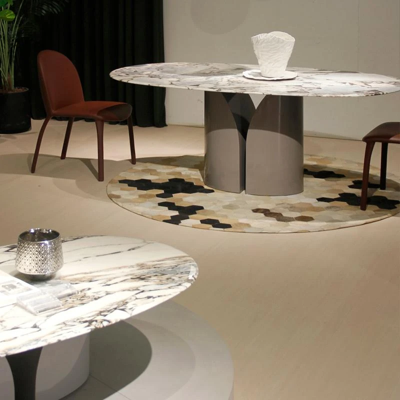 天然大理石のデザイナーによる個性的なクリエイティブラウンドテーブル、高級感溢れる円形ダイニングテーブルで、別荘や高級レストランに最適。上質な贅沢をあなたの空間に。