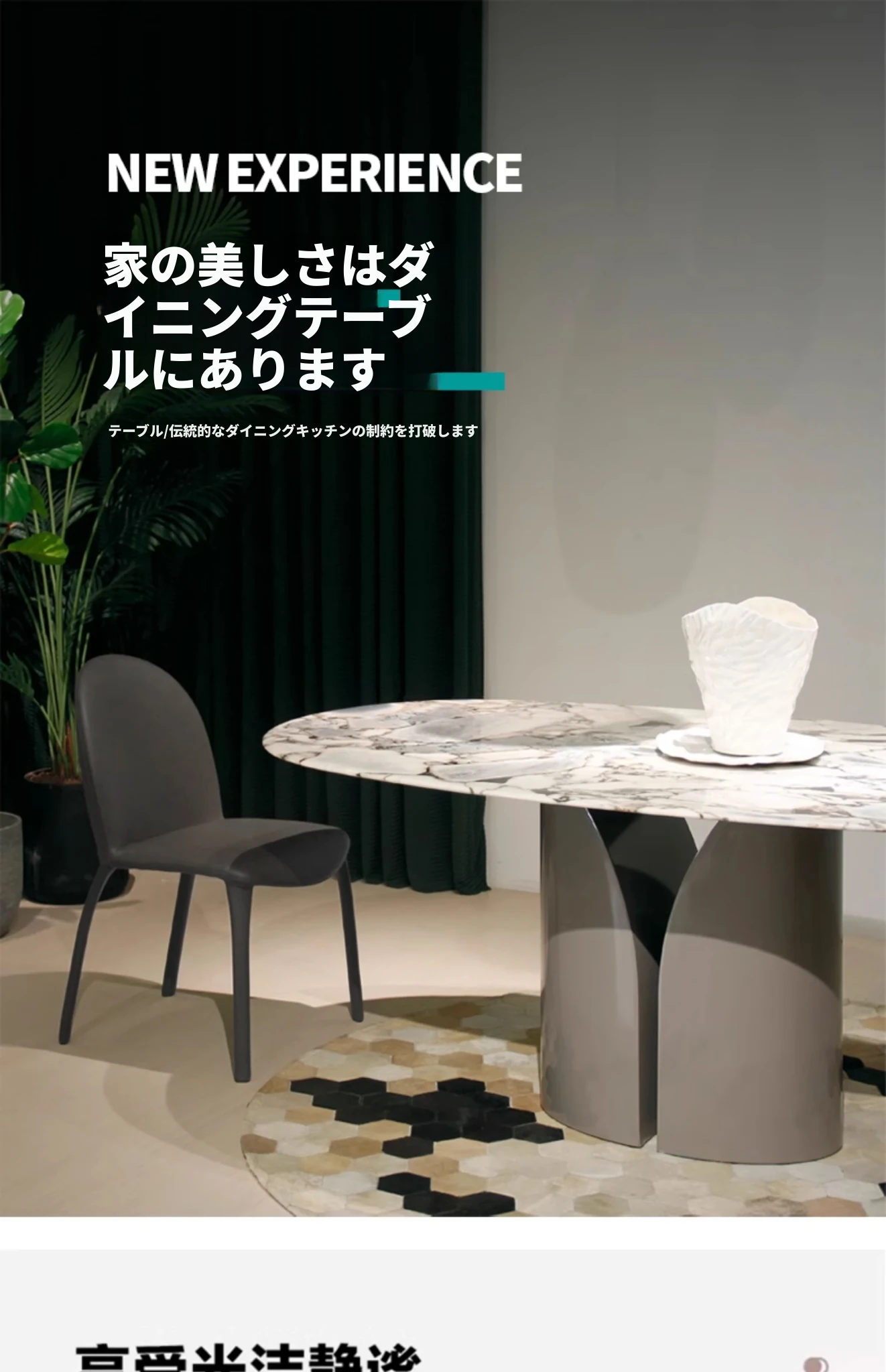 全実木脚の超クリスタルストーンダイニングテーブル - 高級感あふれる天然大理石とマイクロクリスタルストーン、洗練された北欧スタイルで登場!食事の時間を特別にする、軽やかなラグジュアリー感をお楽しみください。