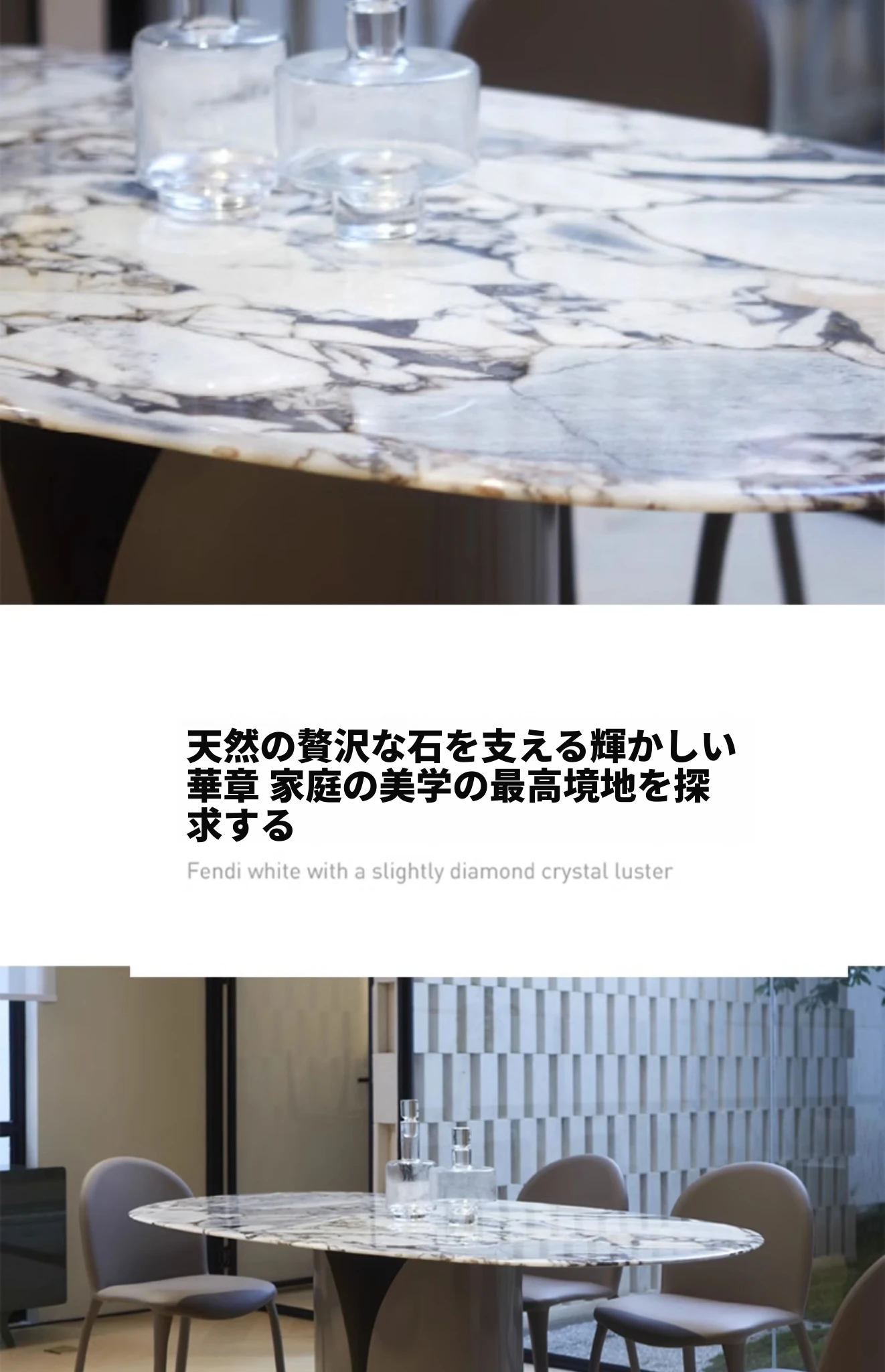 高級プラチナダイヤモンド天然石のダイニングテーブル - 天然大理石使用のイタリアンラグジュアリー rectangular テーブルと椅子のセット!洗練されたデザインで、特別なひとときを演出します。