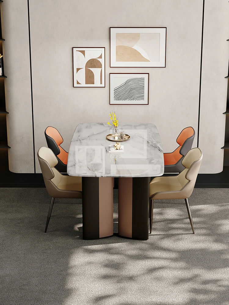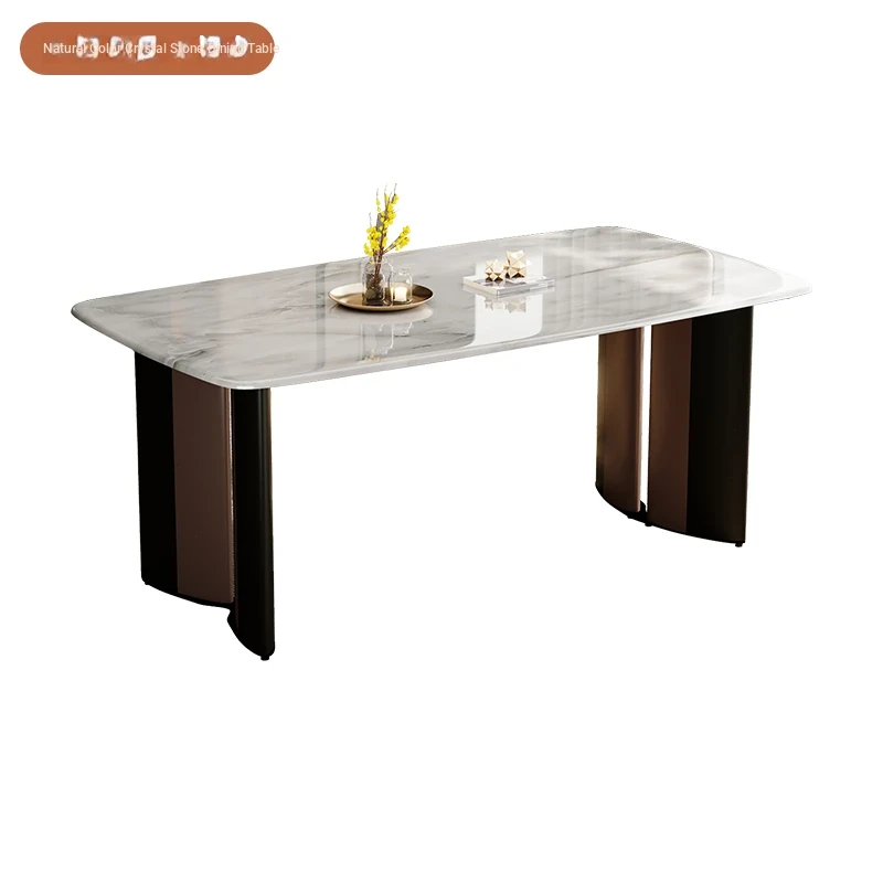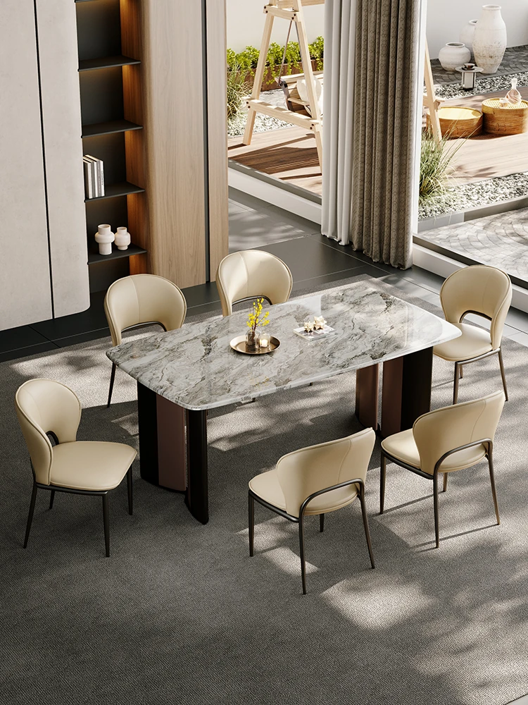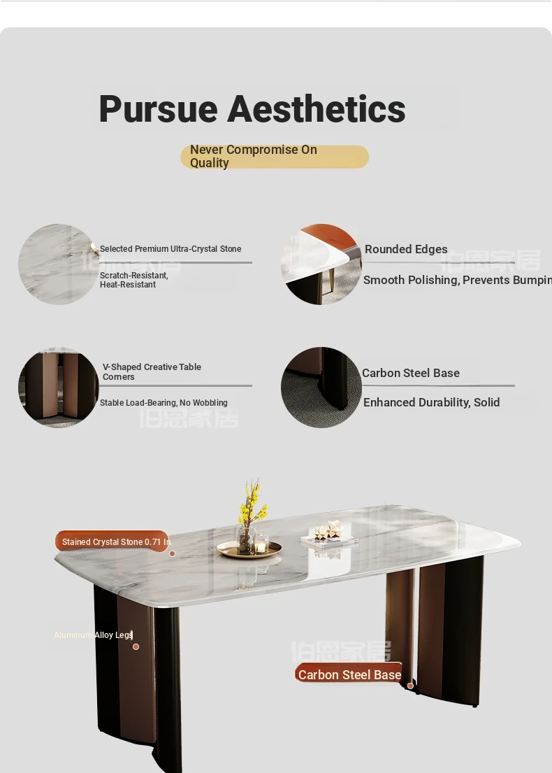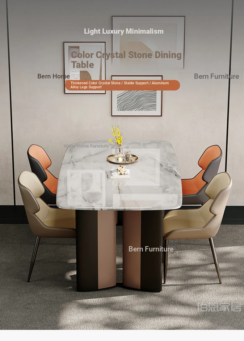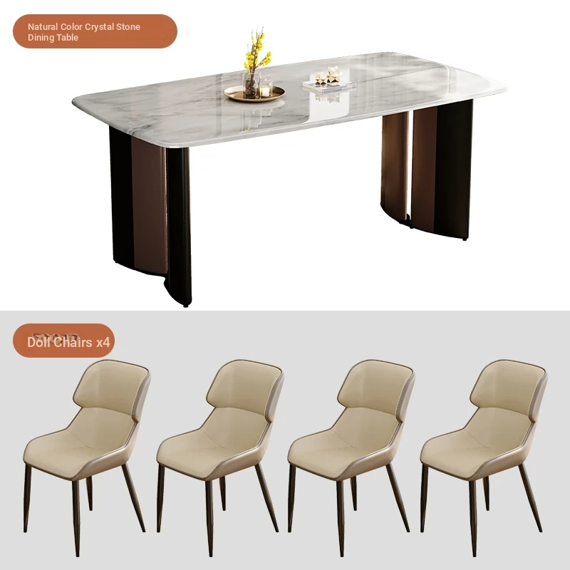 Elegant Marble Dining Table Set - Rectangular Microcrystal Stone Design for Small Spaces, Perfect for Home Use, Exuding Luxury and Sophistication