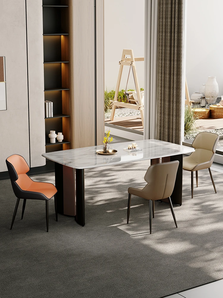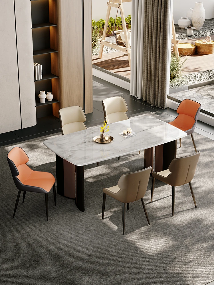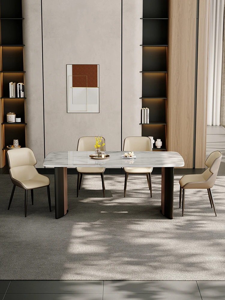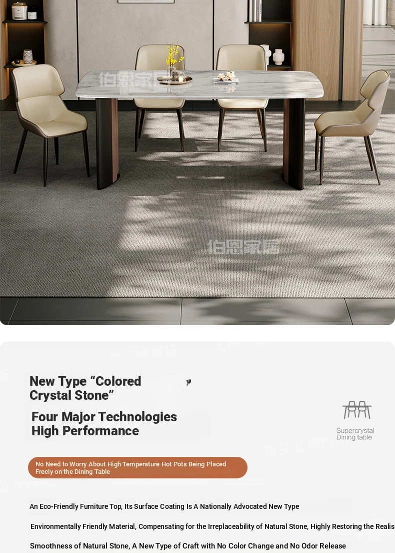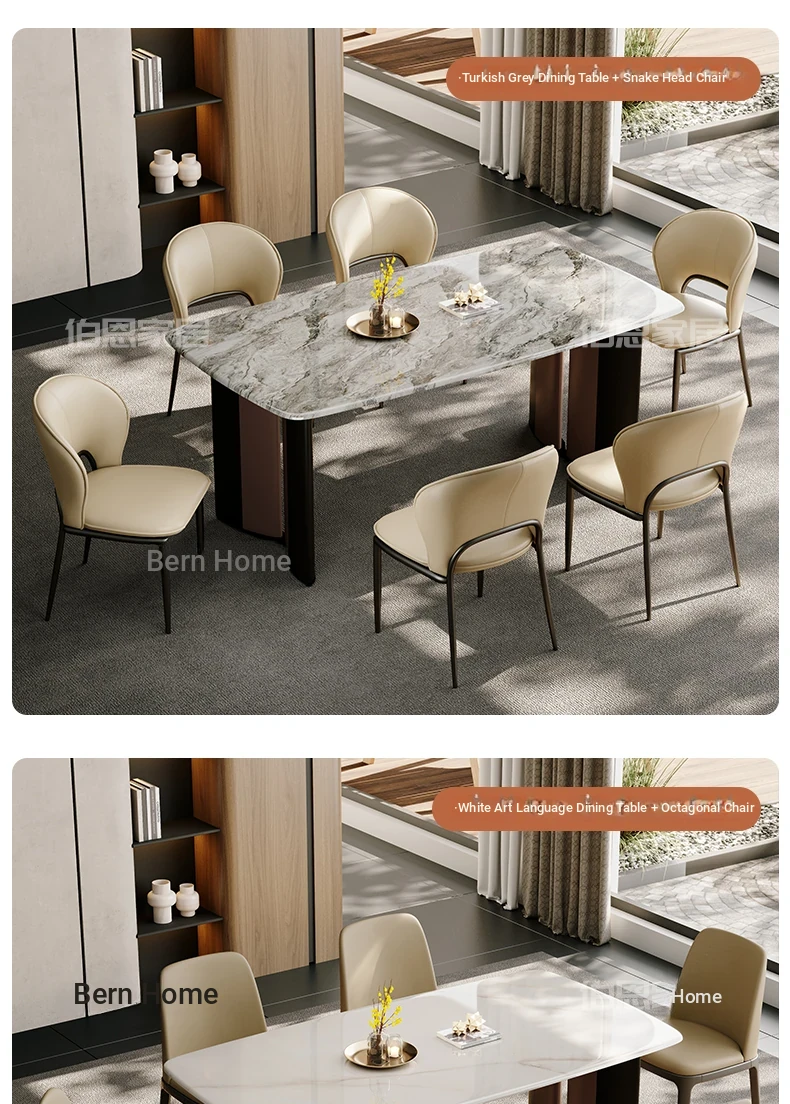 Elegant Marble Dining Table Set - Rectangular Microcrystal Stone Design for Small Spaces, Perfect for Home Use, Exuding Luxury and Sophistication
