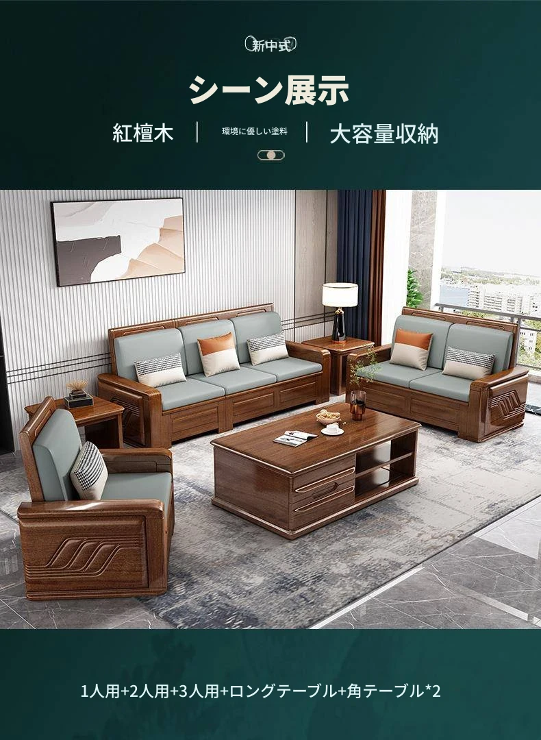 新中式デザインの高級感溢れる無垢材ソファ、紅檀木製のリビング用小型多人数対応のフィーサソファセット。おしゃれで洗練された空間を演出する、あなたの理想の家具です!