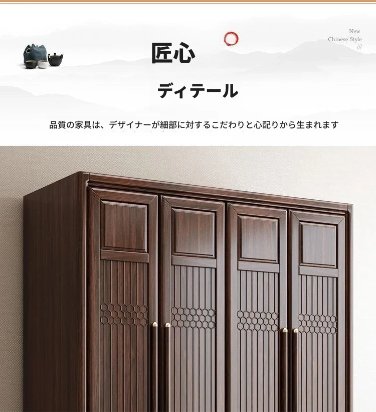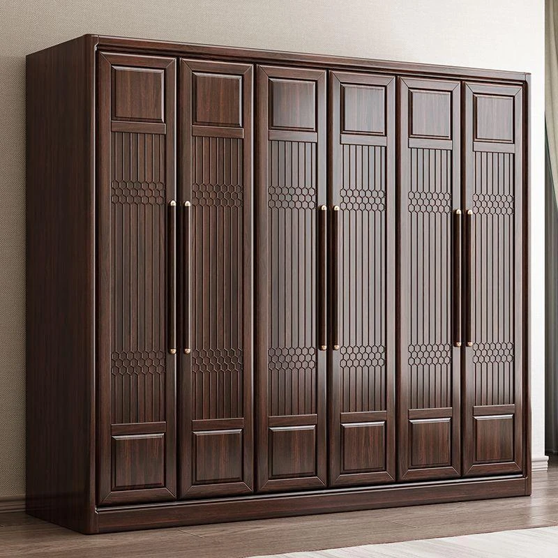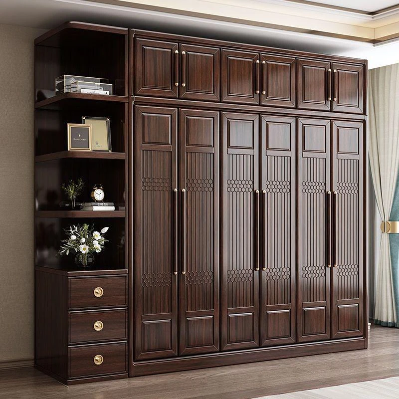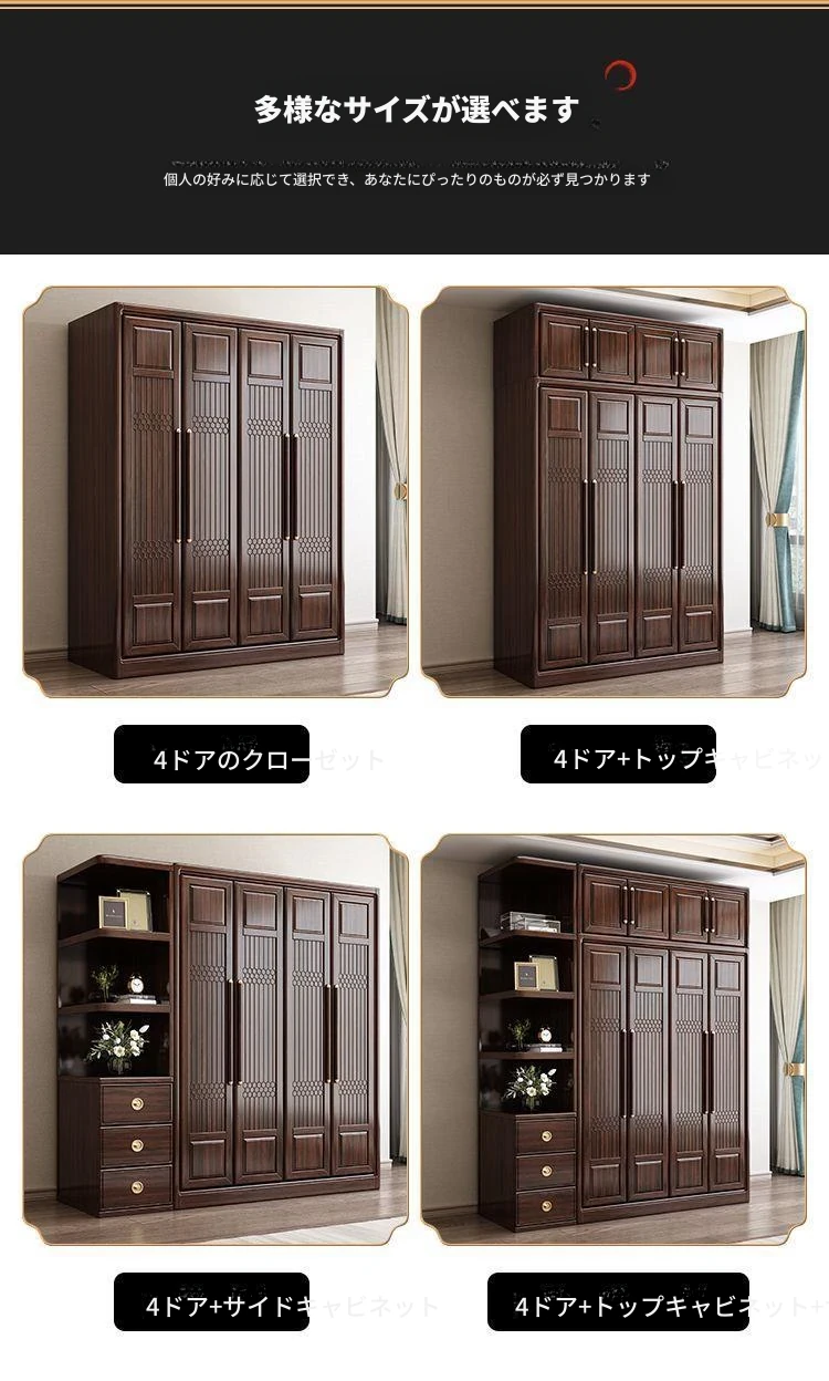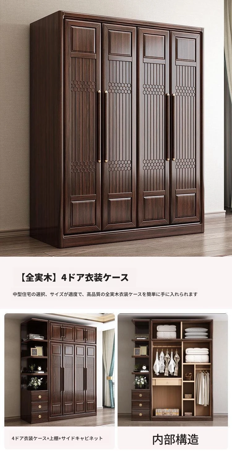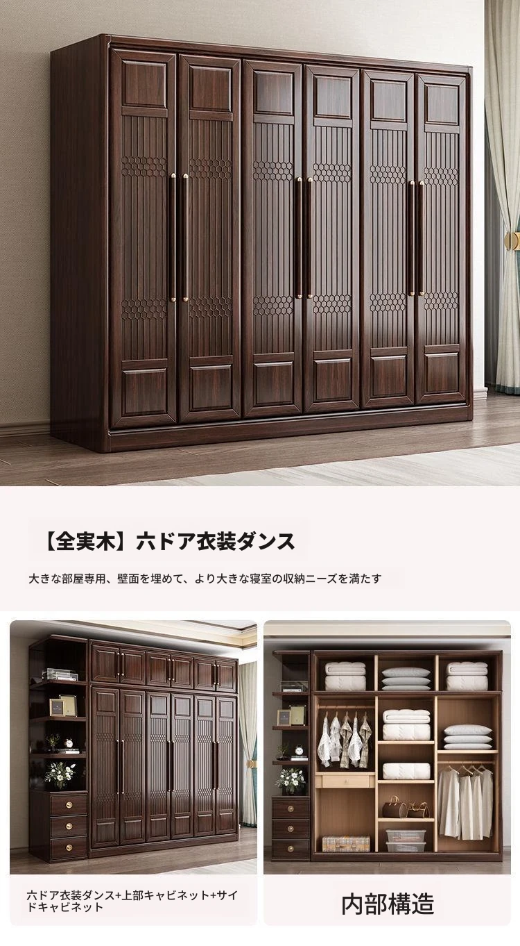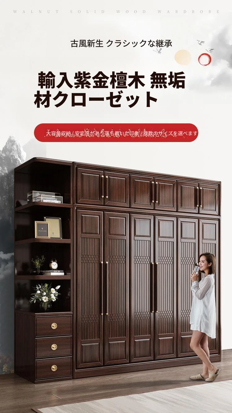 新中式スタイルの本格的な無垢材衣類収納棚 - 家庭用寝室に最適!3456扉で大容量、全て無垢材使用の高級家具、紫金檀木の美しさを引き立てます。収納力抜群で、スタイリッシュな空間を演出!