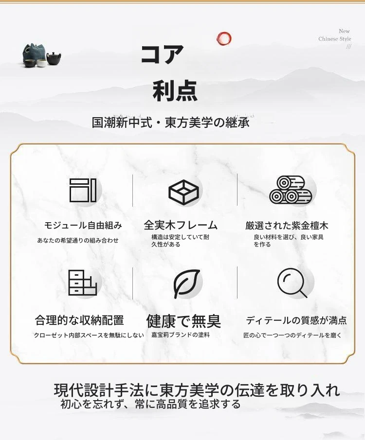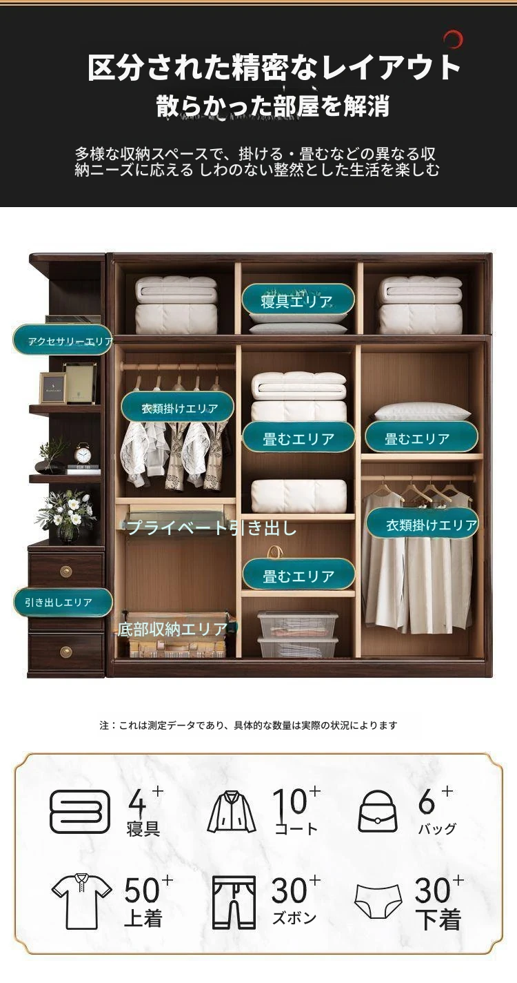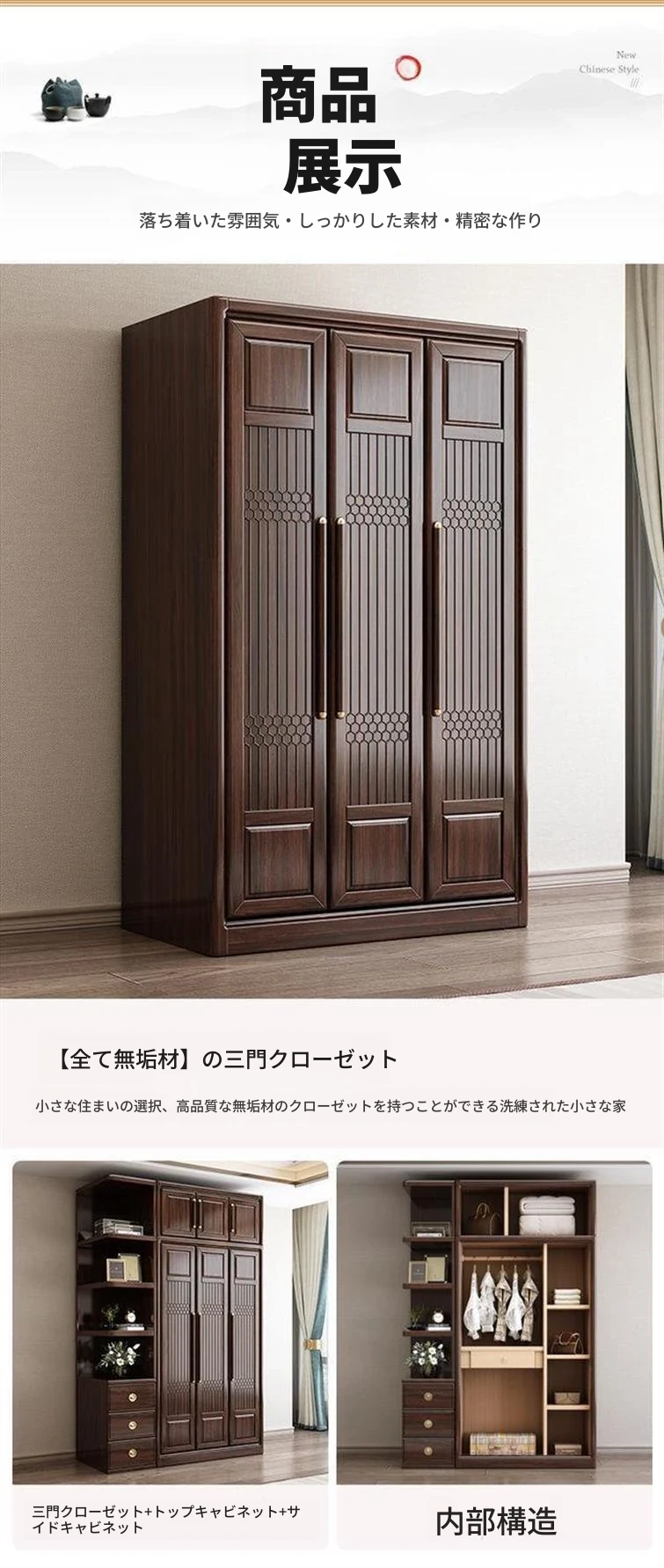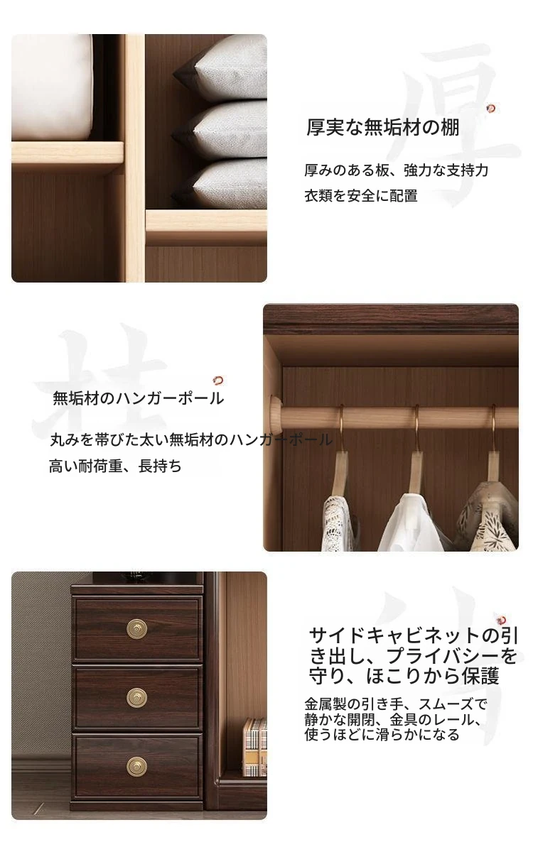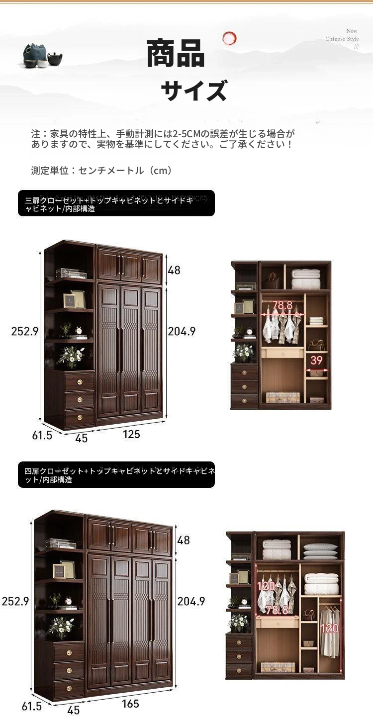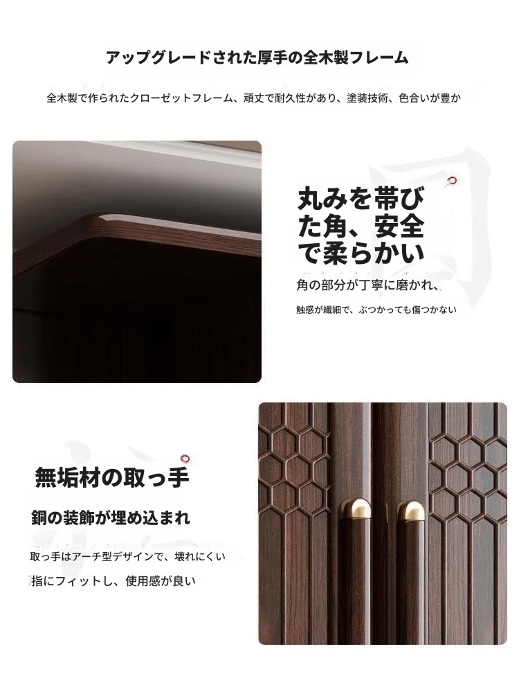 新中式スタイルの本格的な無垢材衣類収納棚 - 家庭用寝室に最適!3456扉で大容量、全て無垢材使用の高級家具、紫金檀木の美しさを引き立てます。収納力抜群で、スタイリッシュな空間を演出!