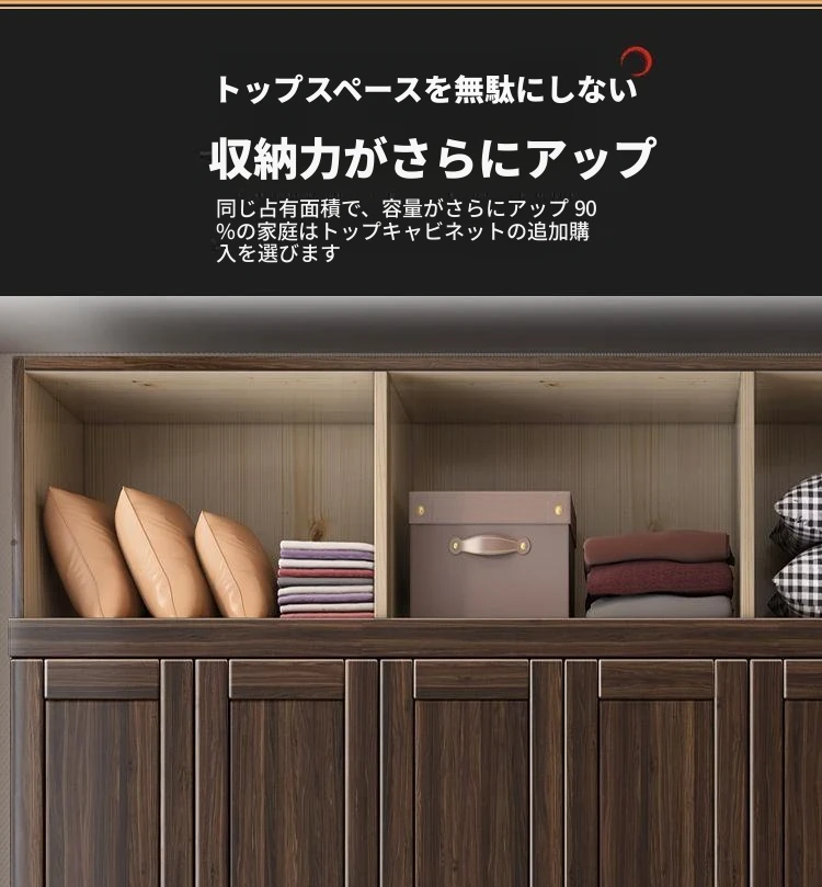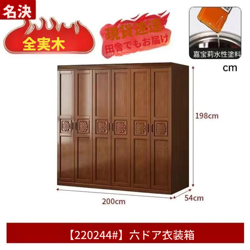 六ドア大天然木クローゼット+上部キャビネット
