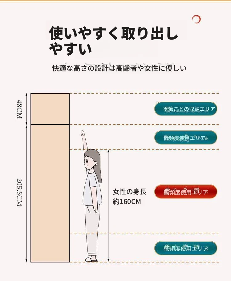 四ドア大天然木クローゼット+上部キャビネット