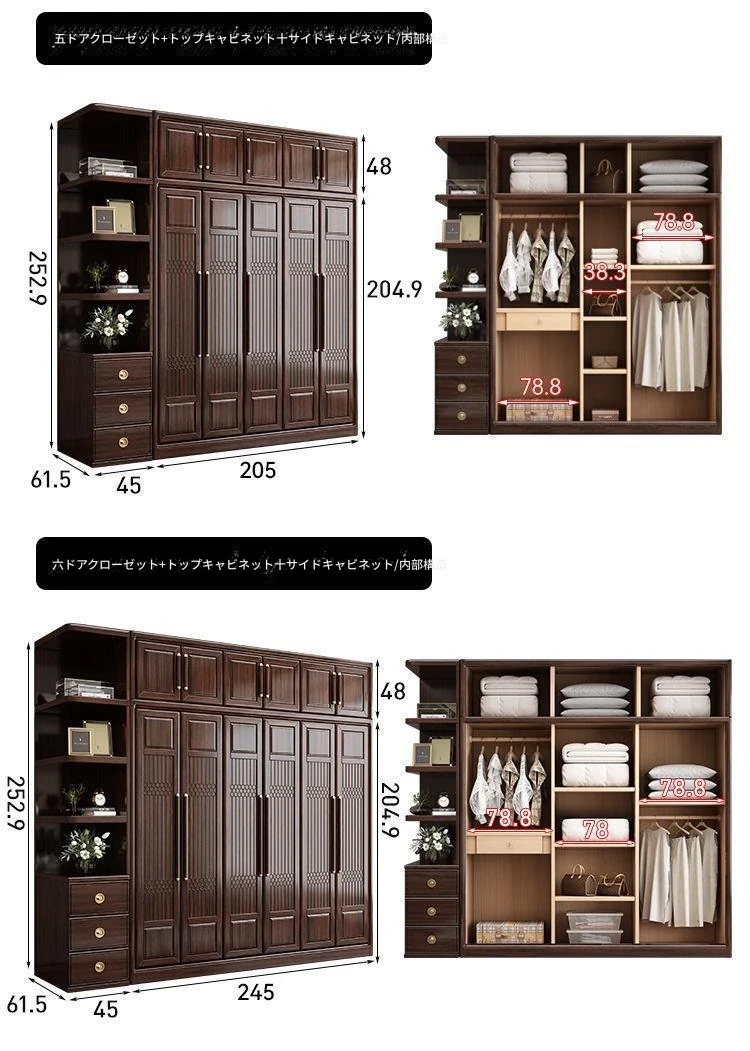 六ドア大天然木クローゼット+サイドキャビネット