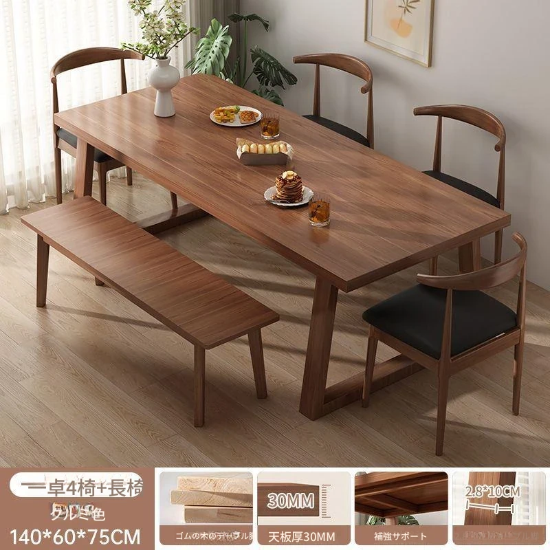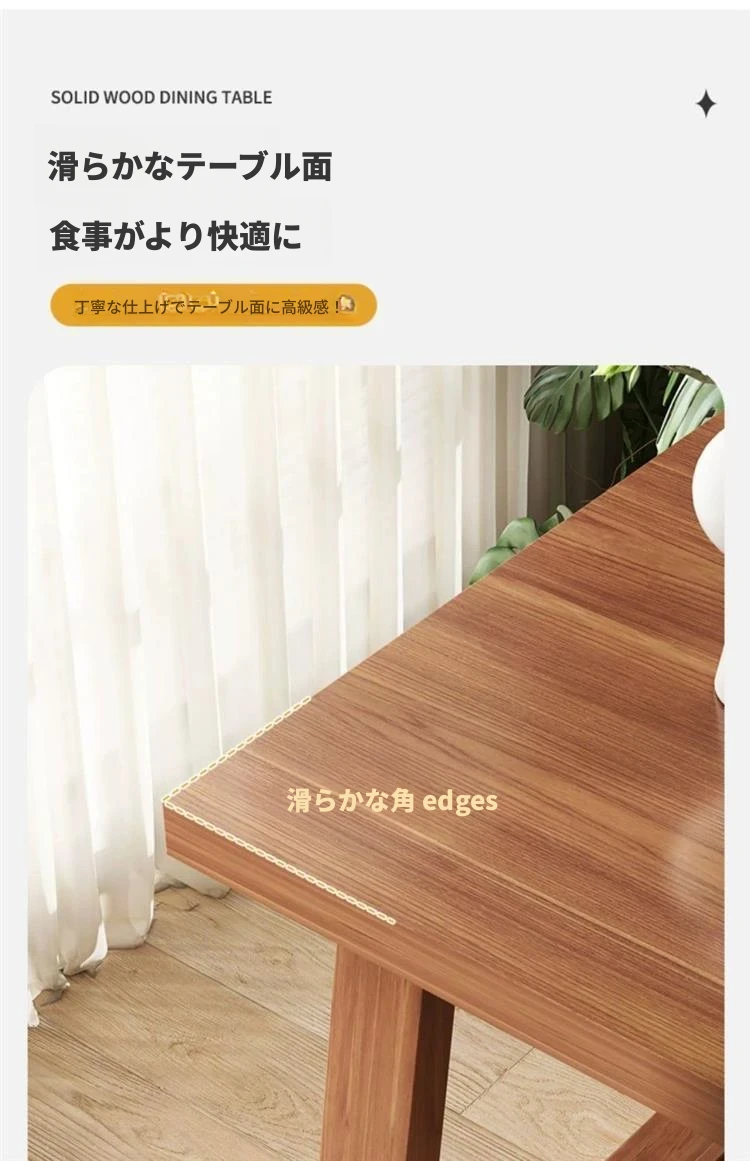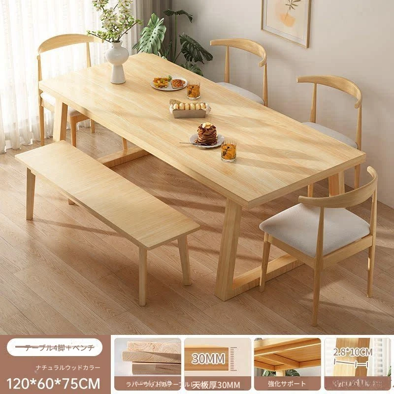 小型家用長方形ダイニングテーブルセット - おしゃれな天然木脚のシンプルデザイン!リビングやオフィスにぴったり、食事や作業が快適に楽しめるコンパクトなテーブル&チェアの組み合わせ。