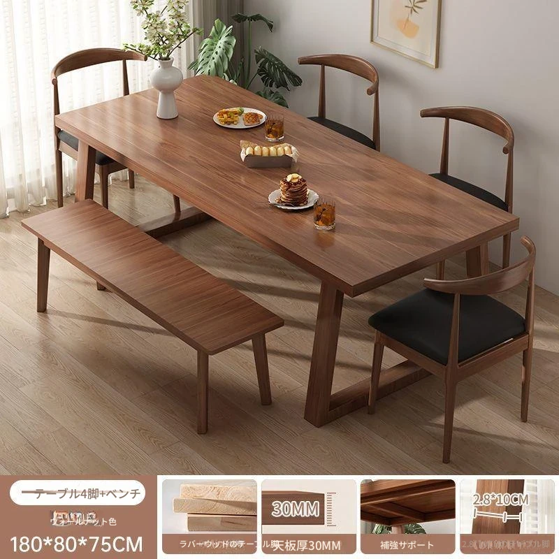 【一卓4椅+長椅子】ウォールナット色180cm