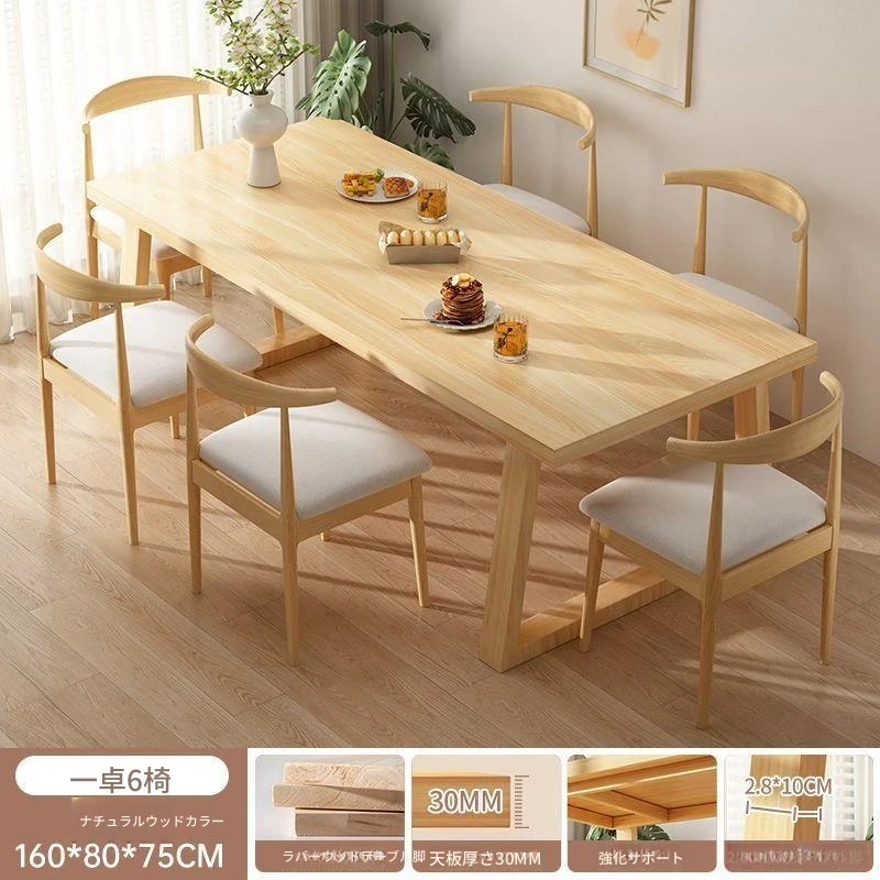 【一卓6椅】ナチュラル色160*80*75