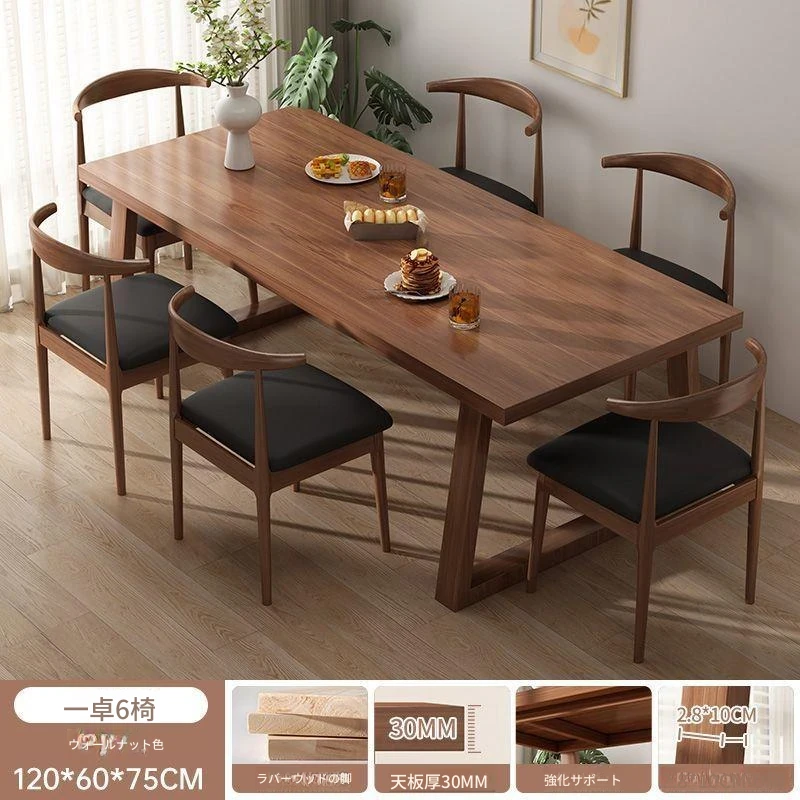 【一卓6椅】ウォールナット色120*60*75