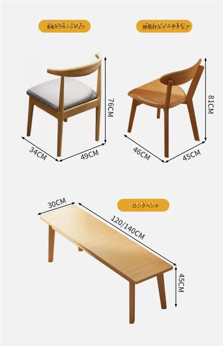 【一卓4椅】ナチュラル色140*60*75