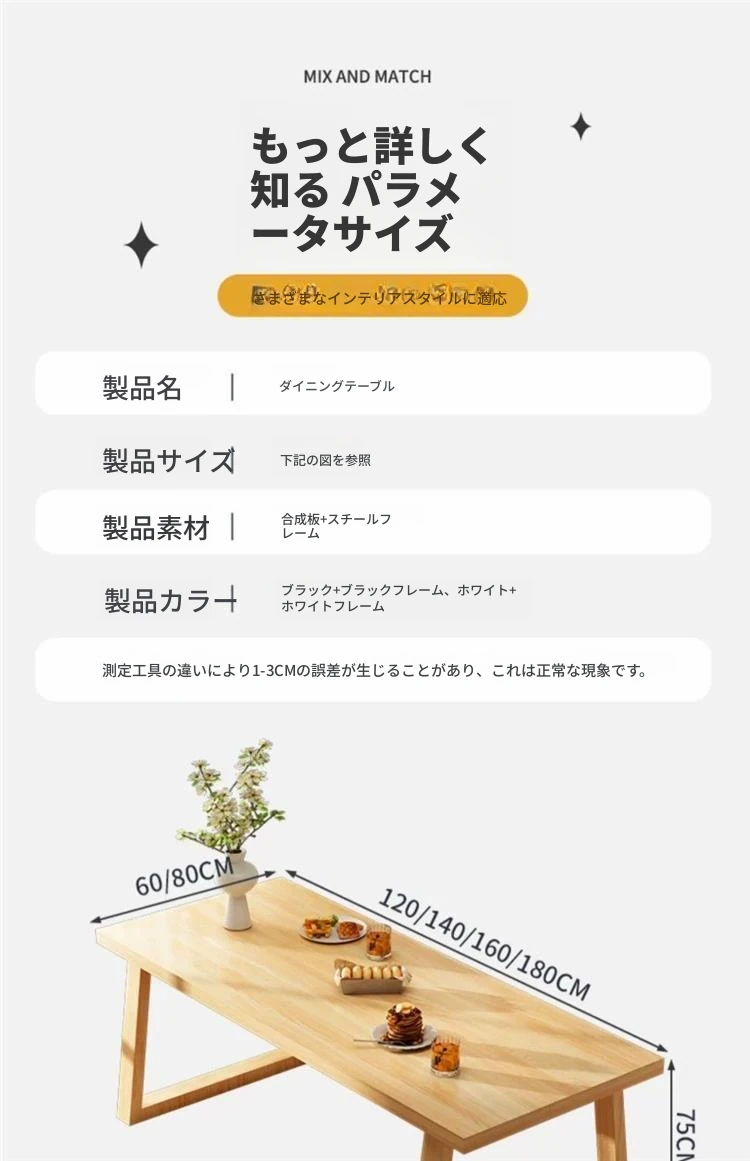 【一卓6椅】ナチュラル色120*60*75