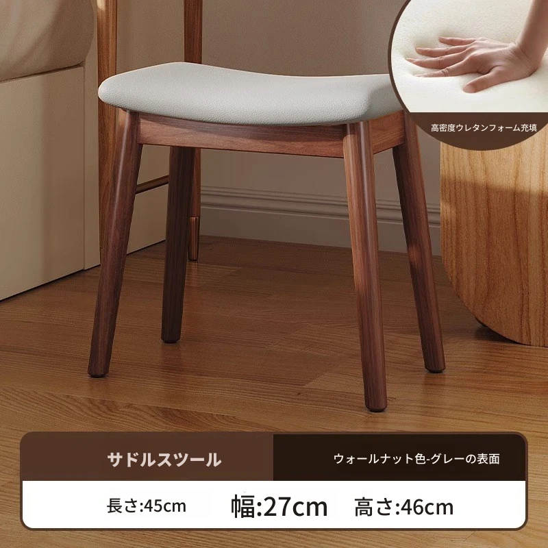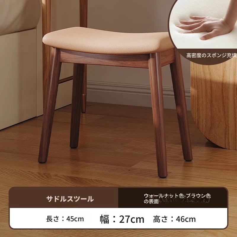 高級感溢れる天然木製サドルスツール - 女子のための化粧台用チェア、軽やかでスタイリッシュなネイルチェアとしても最適!あなたの寝室を華やかに演出します。
