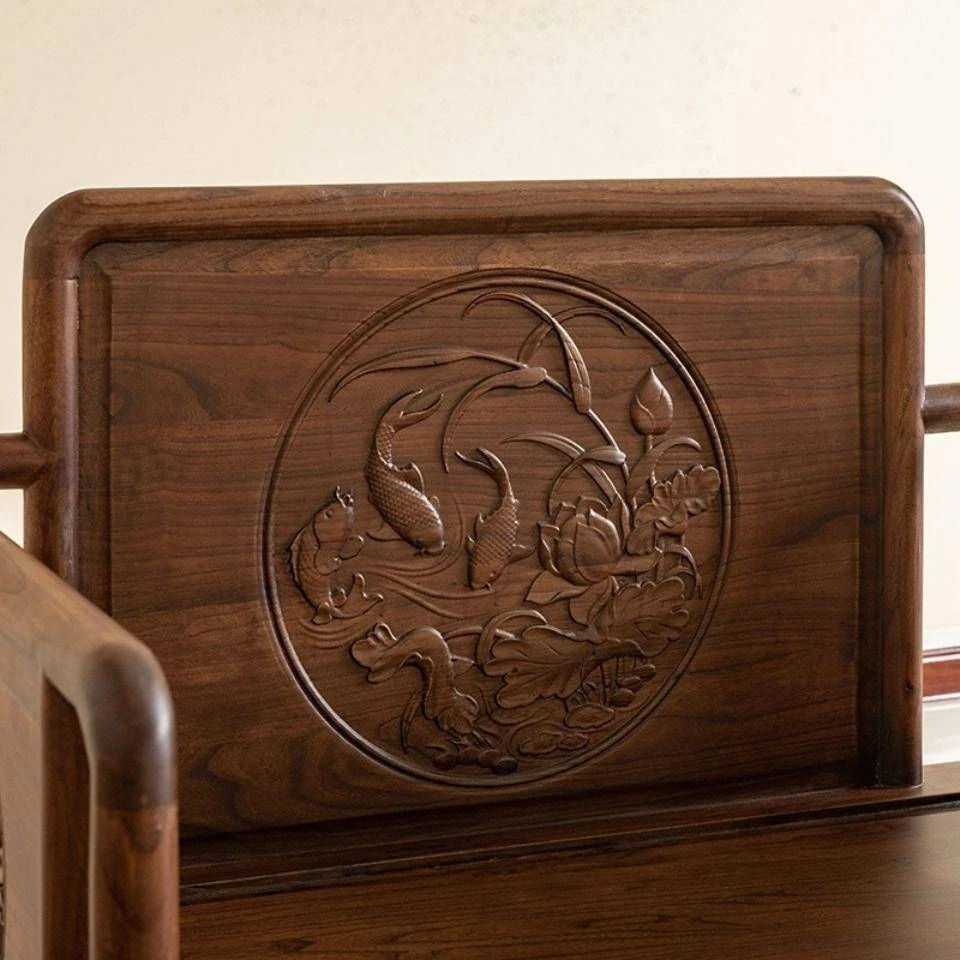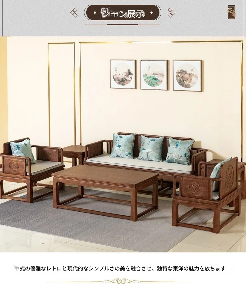 新中式ウッドブラックウッド全実木ソファ|冬夏兼用のラグジュアリー収納ソファ|広々としたヴィラや大規模なリビングに最適!優雅なデザインで心地よい空間を実現。