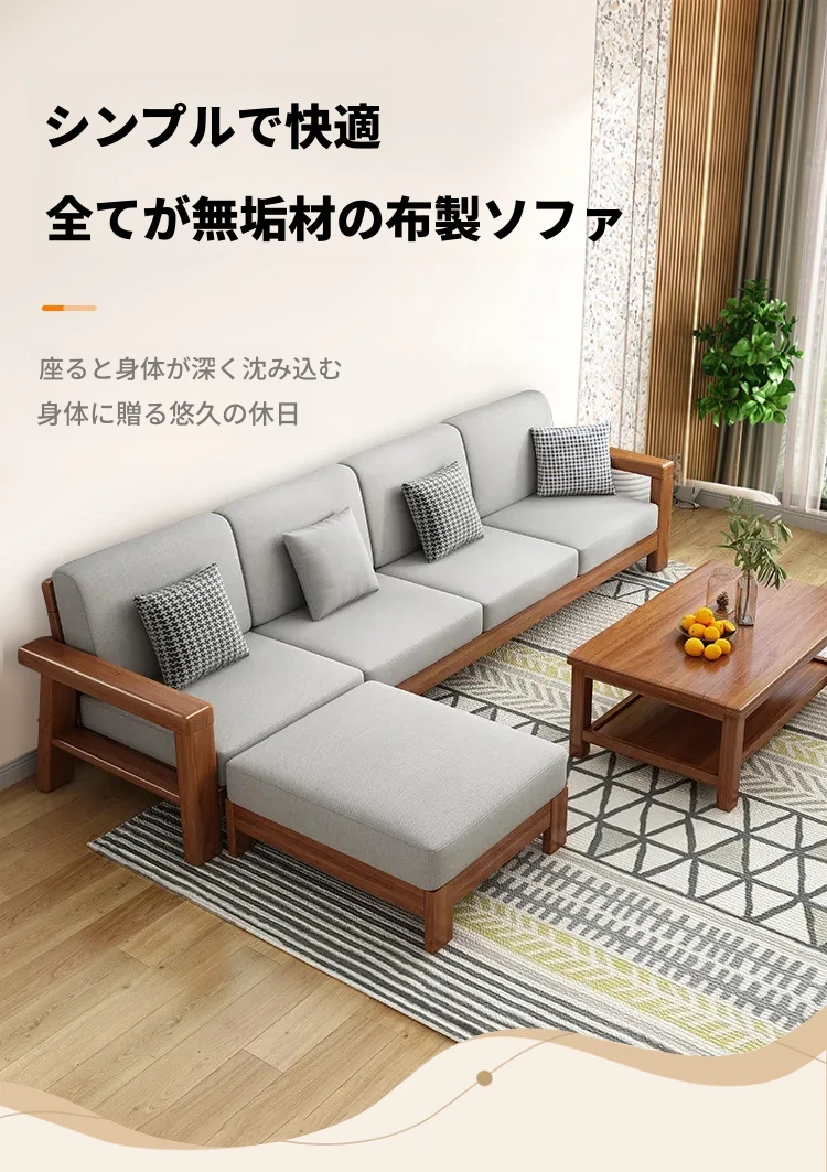 実用的な木製ソファ!シンプルでスタイリッシュなリビングルームのための2WAYコーナーソファベッド。中華スタイルの布製ソファで、快適さと美しさを兼ね備えています。お部屋の雰囲気を一新しましょう!