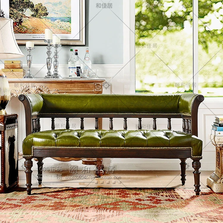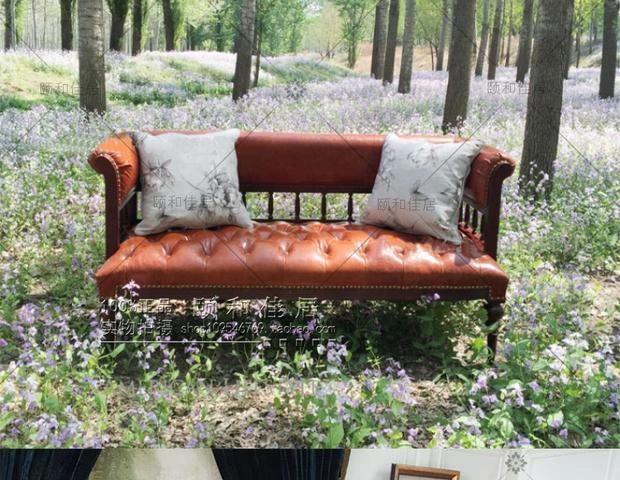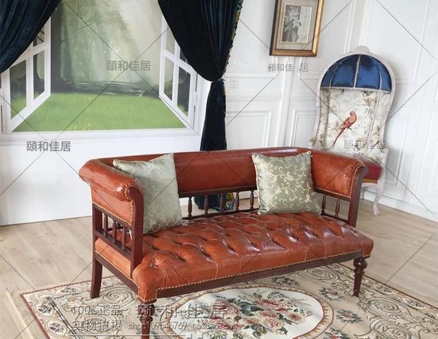 フランス風ネオクラシック古木仕上げダブルソファ椅子 アメリカンカントリー個性派フォトスタジオカフェレストラン用リラックスレザー椅子