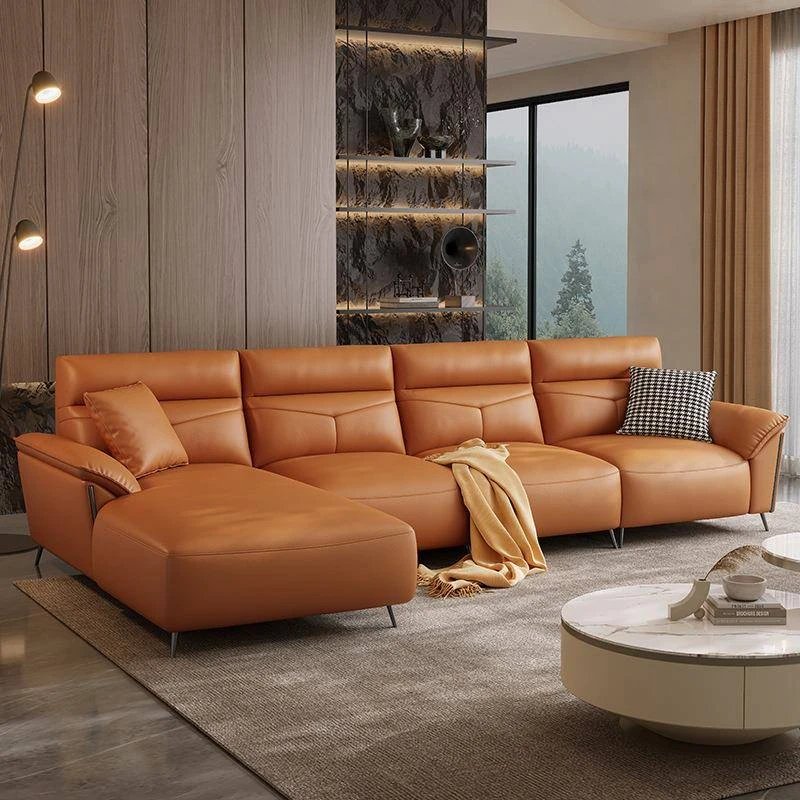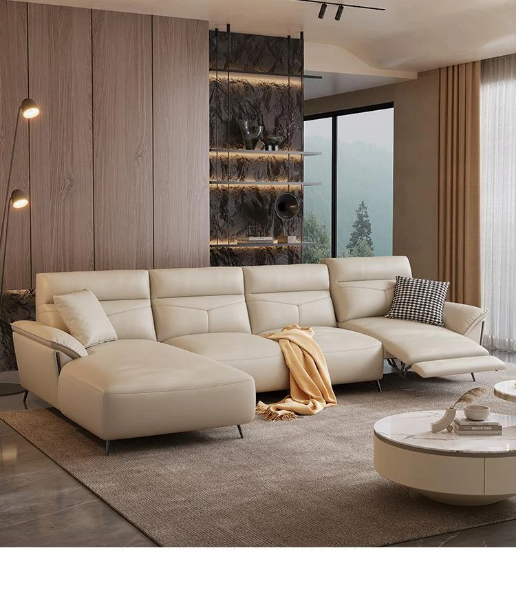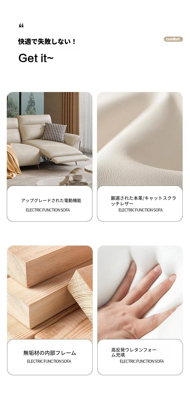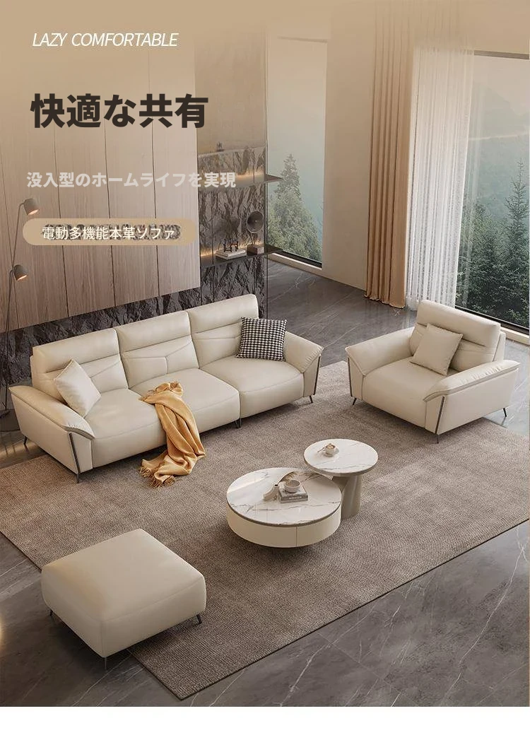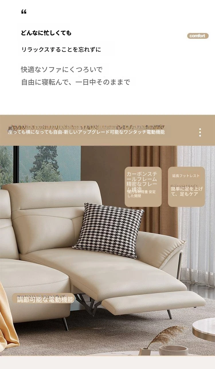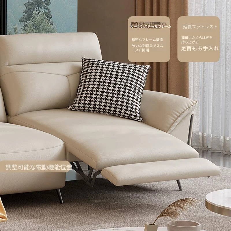 本革製イタリアンミニマリストソファ|小スペース向けシンプル現代デザイン|多機能電動調整可能|伸縮式デイベッドソファ|おしゃれで快適なリビングに最適!