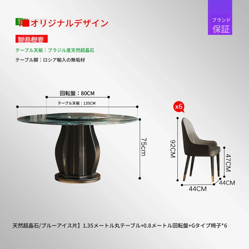 【天然超晶石】1.35メートル円卓+0.8メートル回転台+6脚椅子