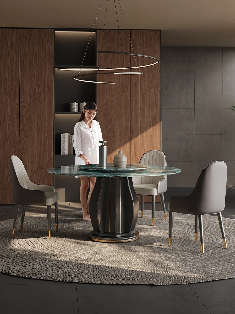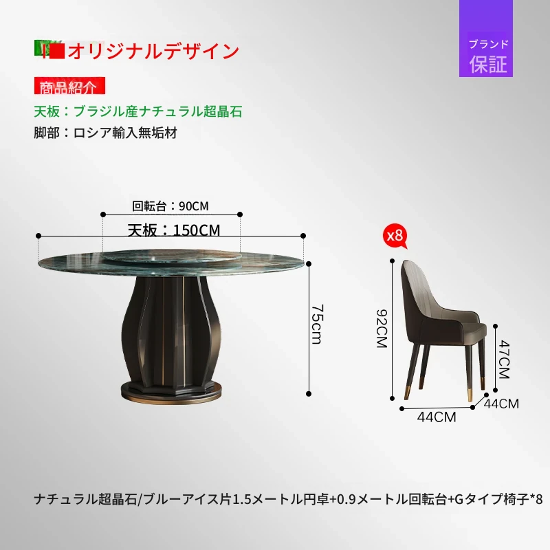 【天然超晶石】1.5メートル円卓+0.9メートル回転台+8脚椅子