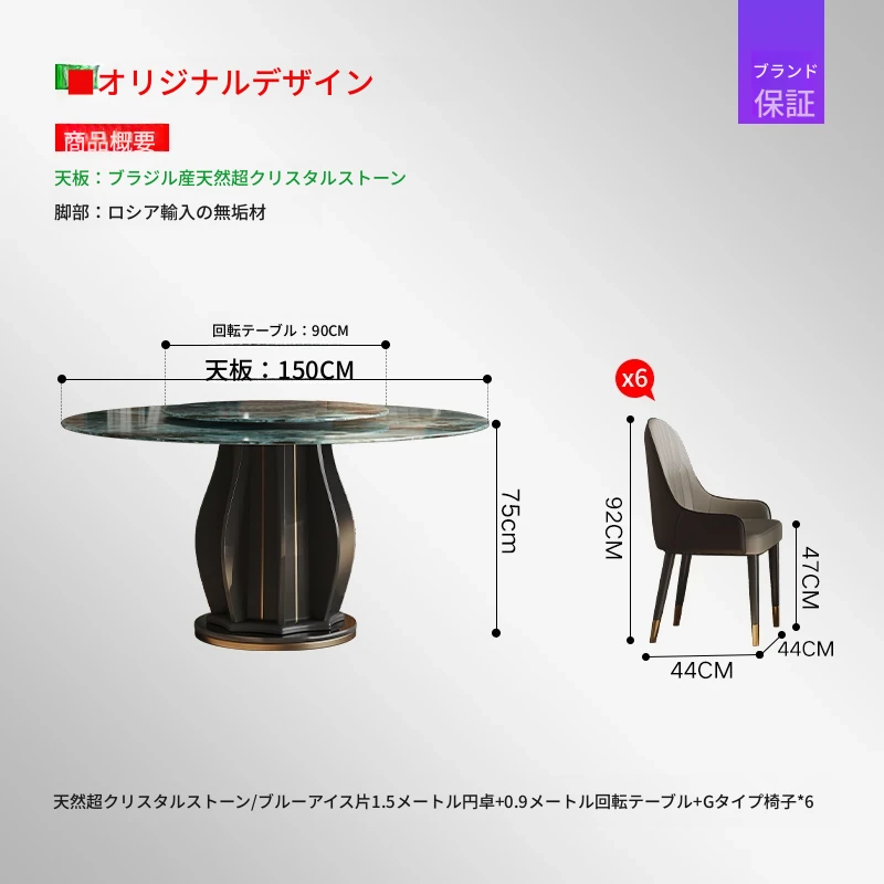 【天然超晶石】1.5メートル円卓+0.9メートル回転台+6脚椅子
