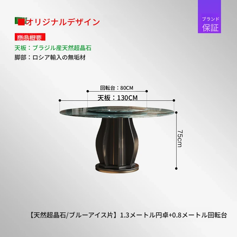 【天然超晶石】1.3メートル円卓+0.8メートル回転台