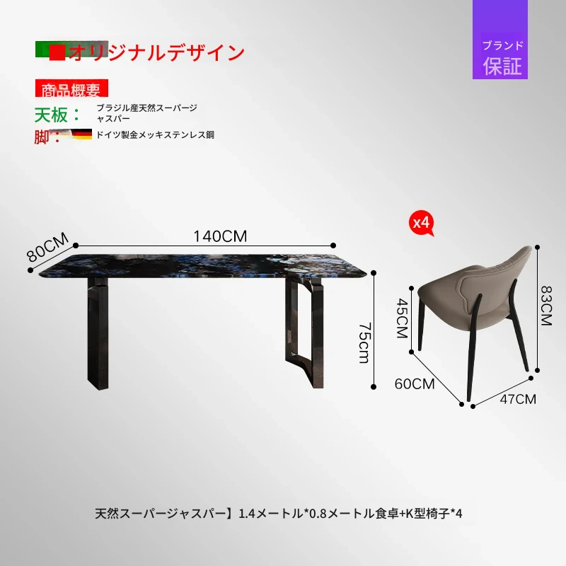 【天然スーパークォーツ】1.4m*0.8mダイニングテーブル+4脚チェア