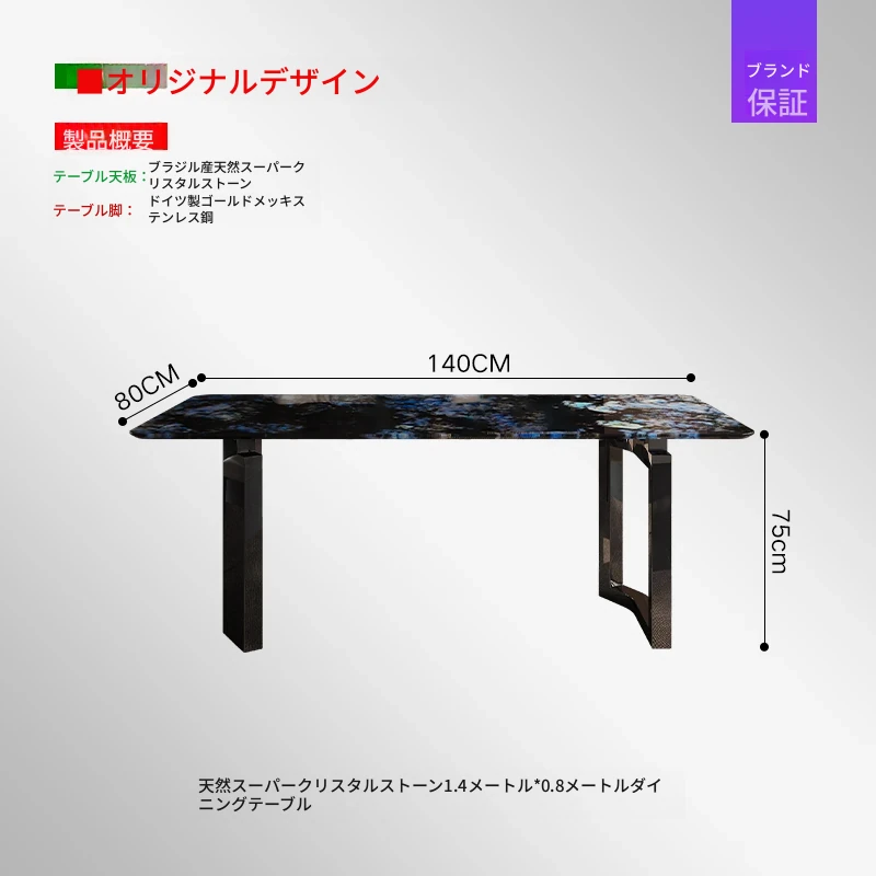 【天然スーパークォーツ】1.4m*0.8mダイニングテーブル