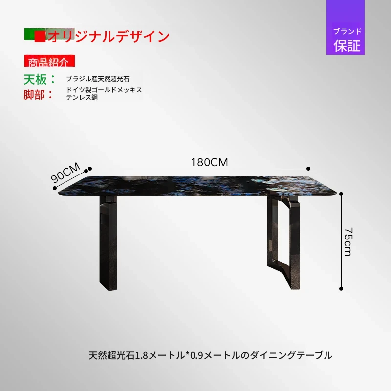【天然スーパークォーツ】1.8m*0.9mダイニングテーブル