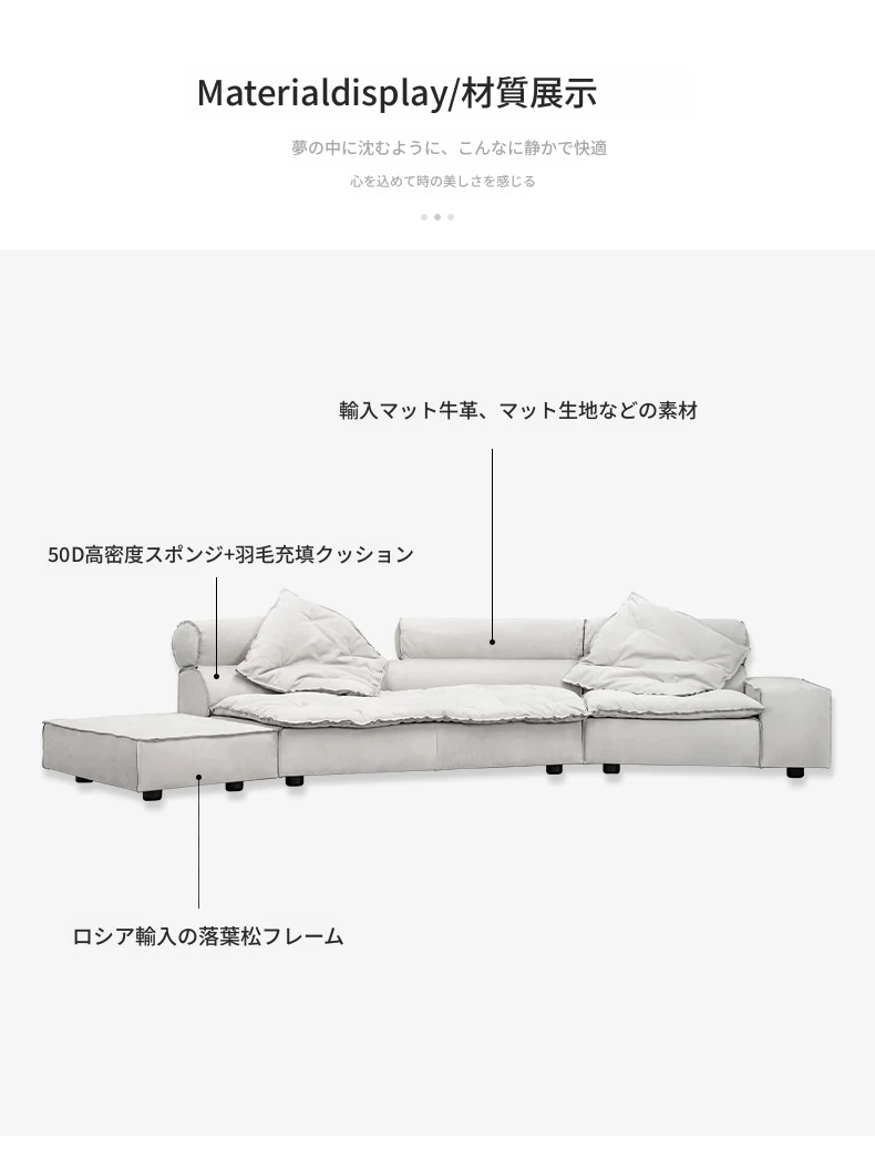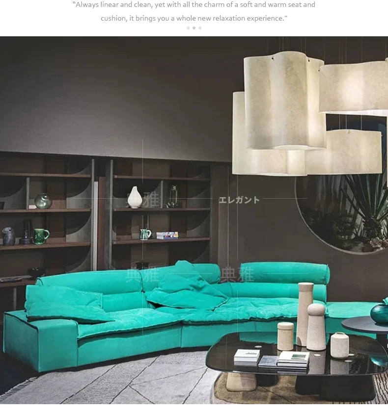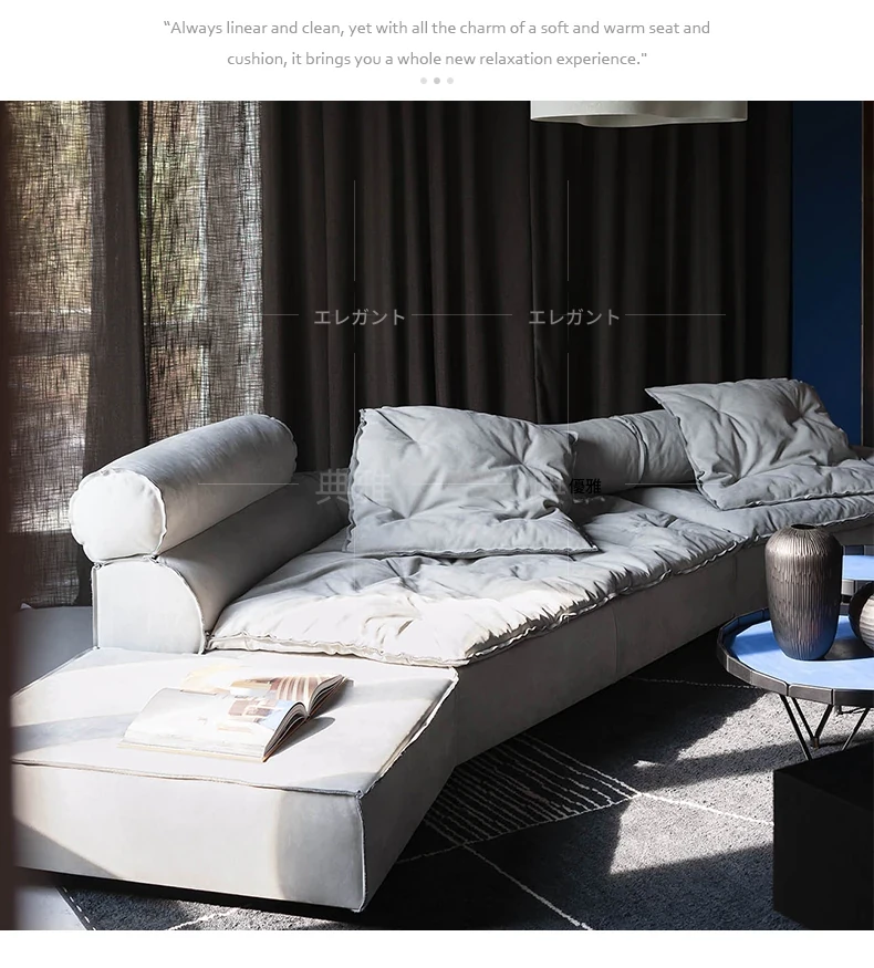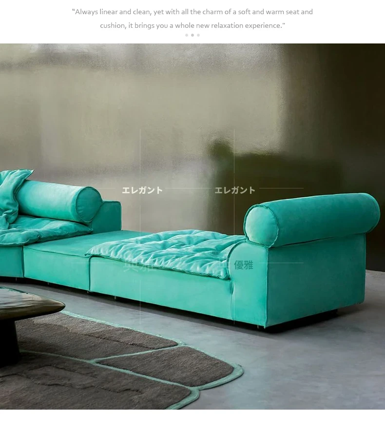 イタリアンミニマリズムデザインのラッチ付きマットファブリックソファ、別荘にぴったりのラグジュアリー感溢れるリビング用3人掛けソファ。広々とした空間に最適なスタイリッシュな直排デザイン!